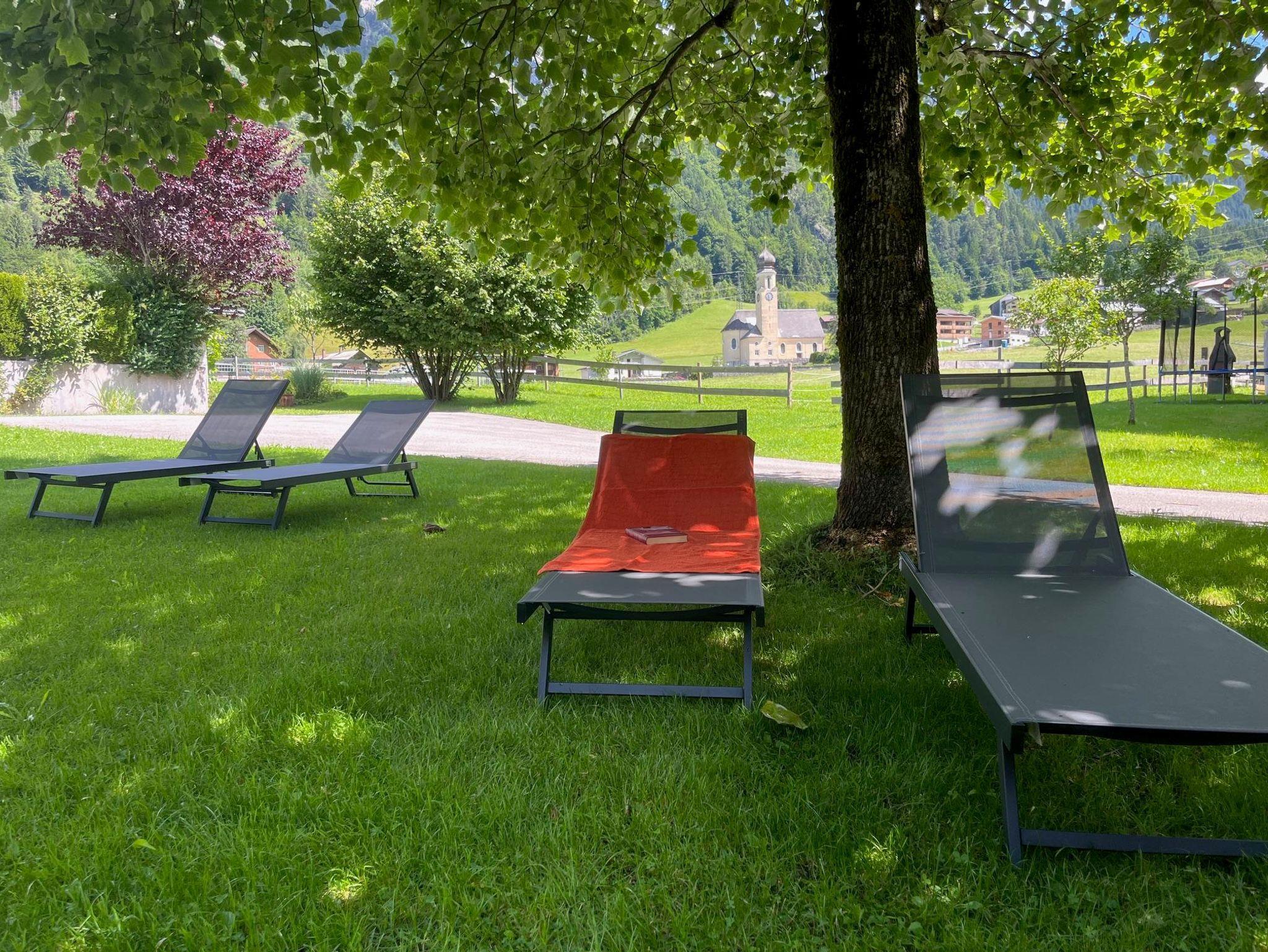 Im Sommer ist unser Garten ein idealer Platz um einmal die Seele, in einer unserer Relax-Liegen, baumeln zu lassen. Den Abend können sie dann in der Sitzecke bei einem guten Glas Wein ausklingen lassen.