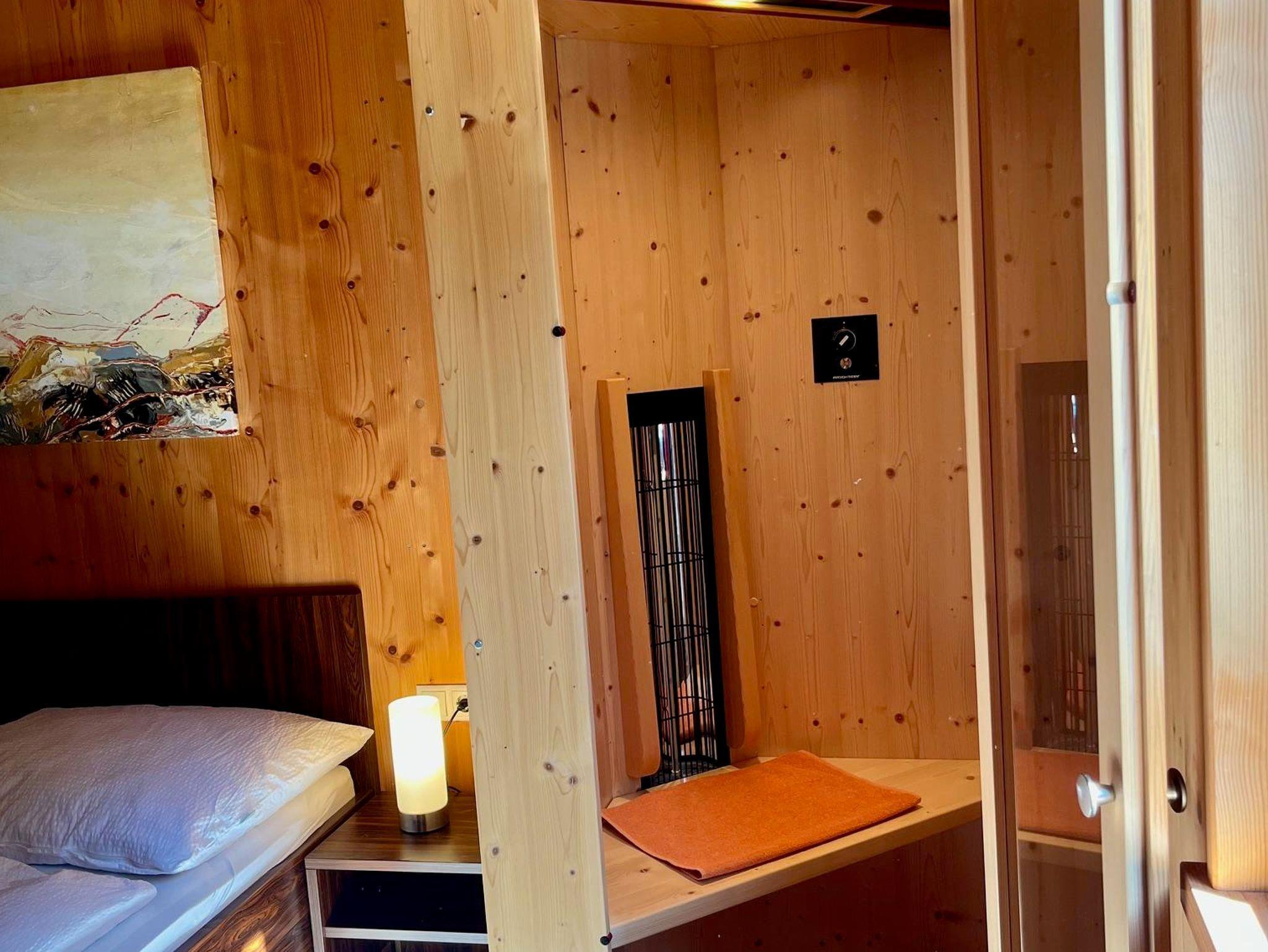 Genießen Sie einen guten Bergschlaf im einem Doppelzimmer mit Infrarotsauna, sowie einem Doppelzimmer mit Zusatzbett. Die großzügige Wohnküche steht für gemeinsame Essen und gemütliche Familienzeit. Zusätzlich stehen zwei Duschen mit WC zur Verfügung.