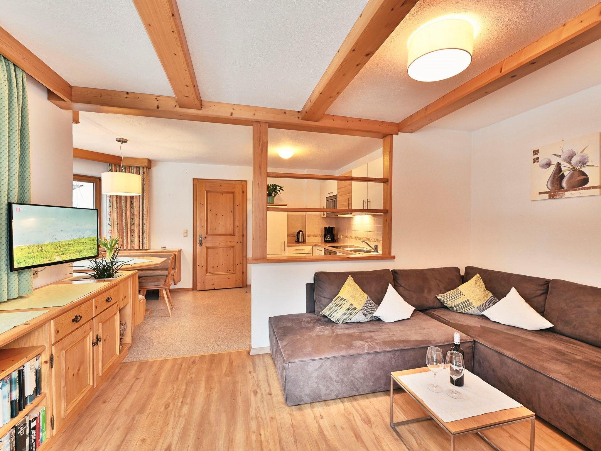 - Wohnbereich mit gemütlicher Sitzecke, SAT TV, kostenloses WLAN und schöner Terrasse mit Ausblick auf die herrliche Bergwelt.