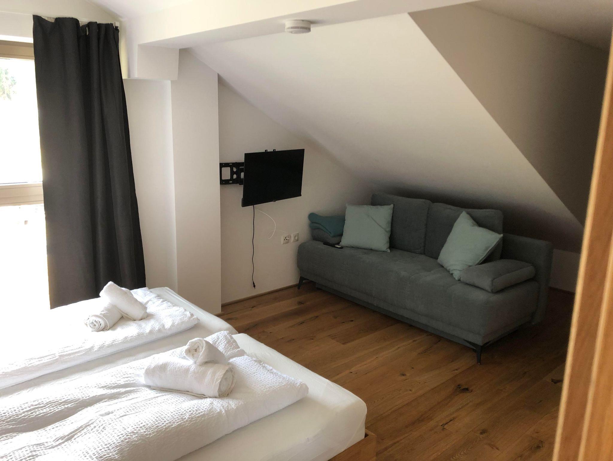 Die Wohnung (TOP8) befindet sich in der ersten Etage. Vom sonnendurchfluteten Wohnzimmer bietet sich ein fantastischer Blick auf den Burtschakopf und das Skigebiet Sonnenkopf.