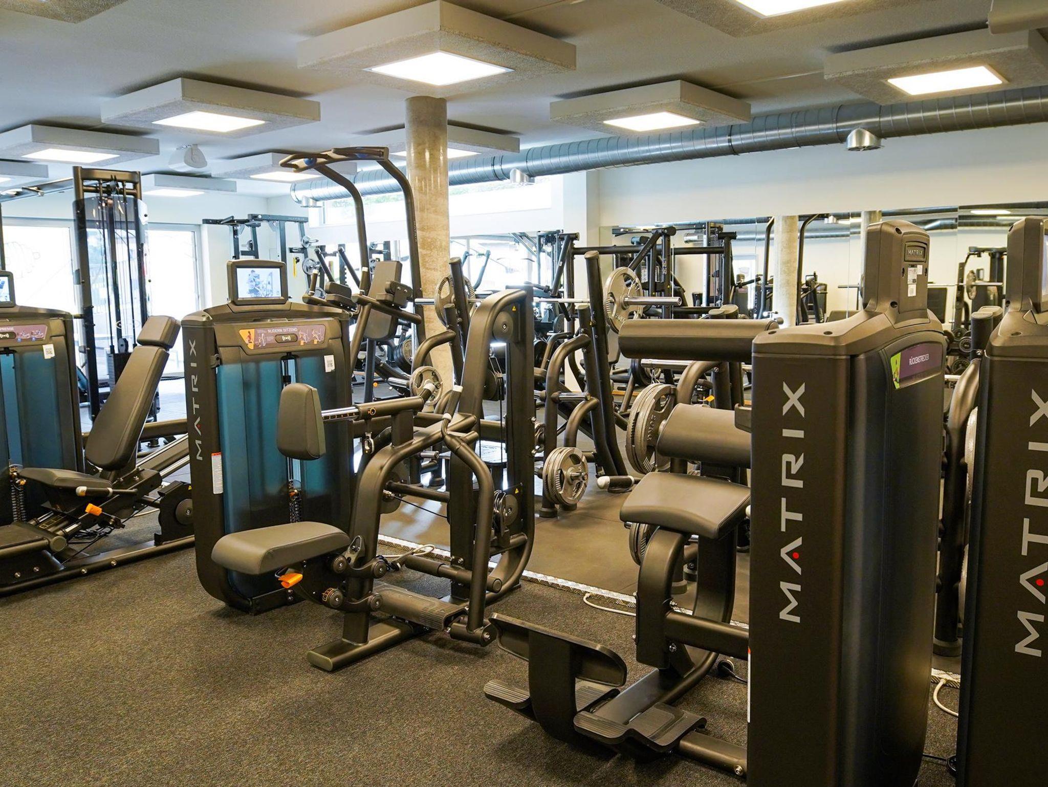 Im Erdgeschoss befindet sich ein modernes Fitnessstudio mit Sauna (Hausgäste bekommen -25% Rabatt) sowie ein 24h Automatenstore.
