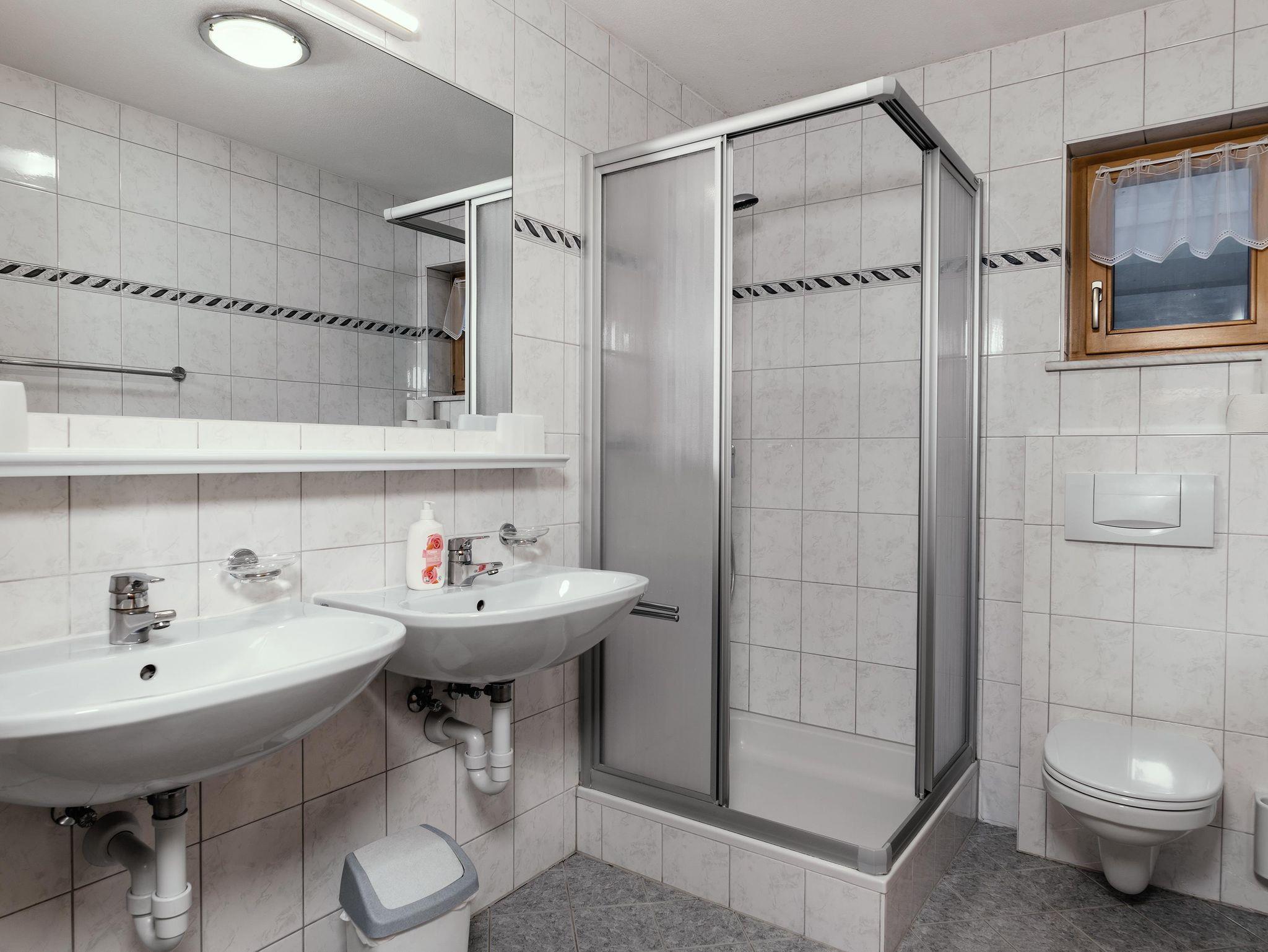Badezimmer mit DU/WC und Doppelwaschbecken