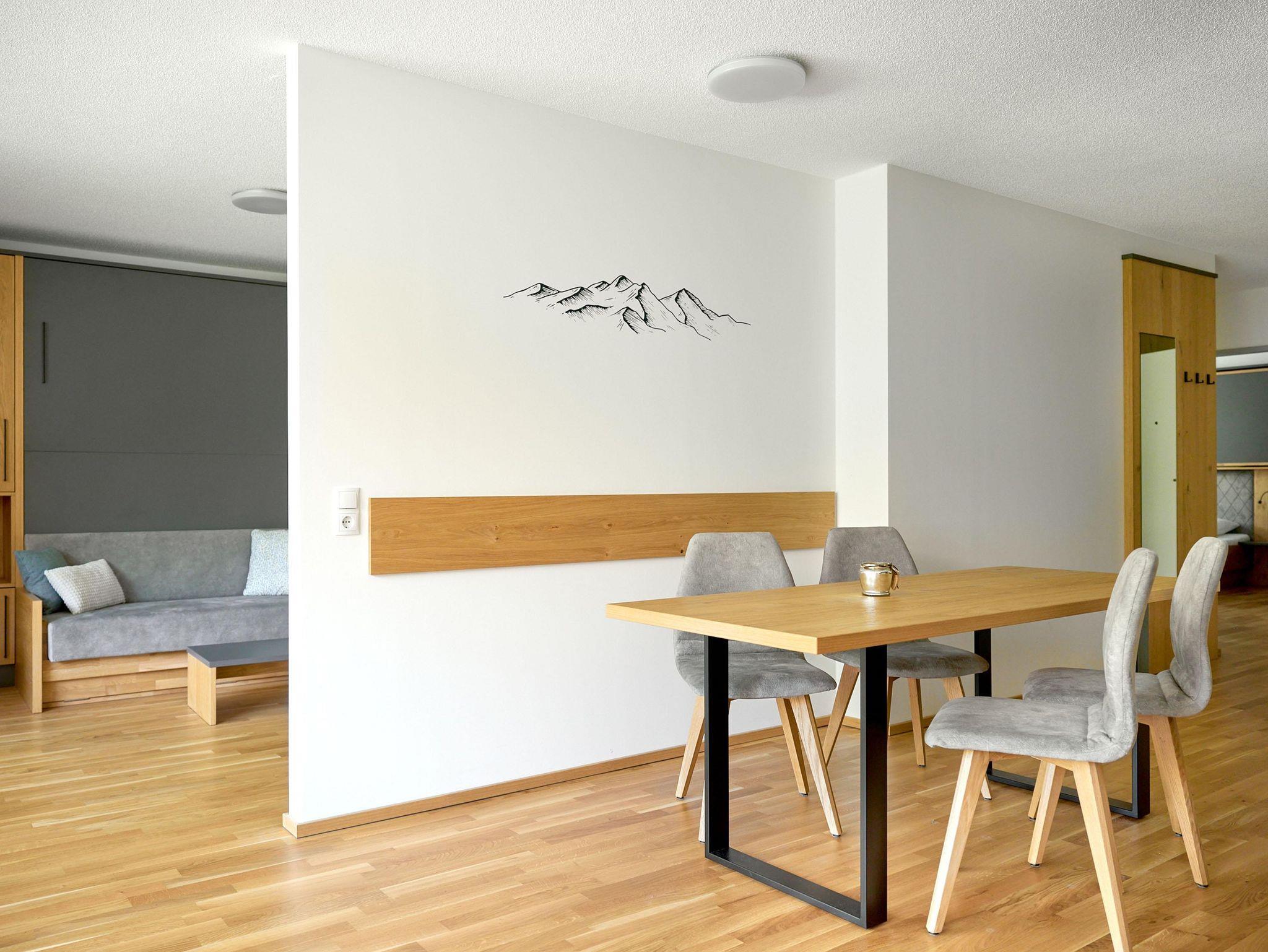 Willkommen im Zapfig Living Apartment 15, Deinem perfekten Rückzugsort für einen erholsamen Aufenthalt. Die 75 m² Unterkunft im 1.Stock bietet ein gemütliches Wohnzimmer inkl. ausziehbaren Kingsizebett mit Smart-TV, 2 Schlafzimmer (Kingsizebett+ausziehbares Einzelbett+Smart-TV) sowie eine voll ausgestattete Küche. Das Badezimmer verfügt über Dusche und WC. Genieße den Komfort einer eigenen Unterkunft und entspanne in alpiner Umgebung. Vom Balkon mit Liegenstühlen besteht Bergblick.