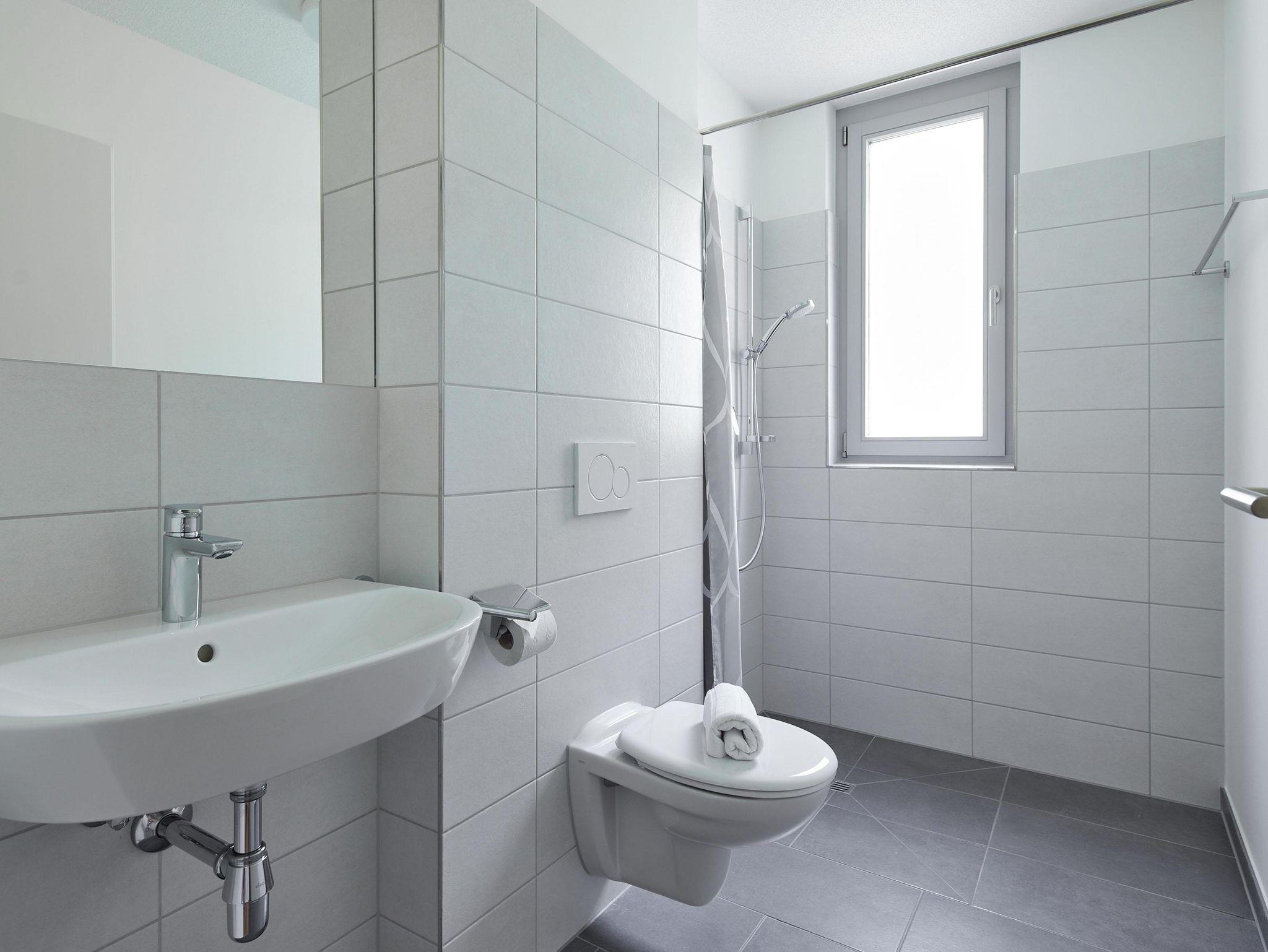 Im Erdgeschoss befindet sich ein modernes Fitnessstudio mit Sauna (Hausgäste bekommen -25% Rabatt) sowie ein 24h Automatenstore.