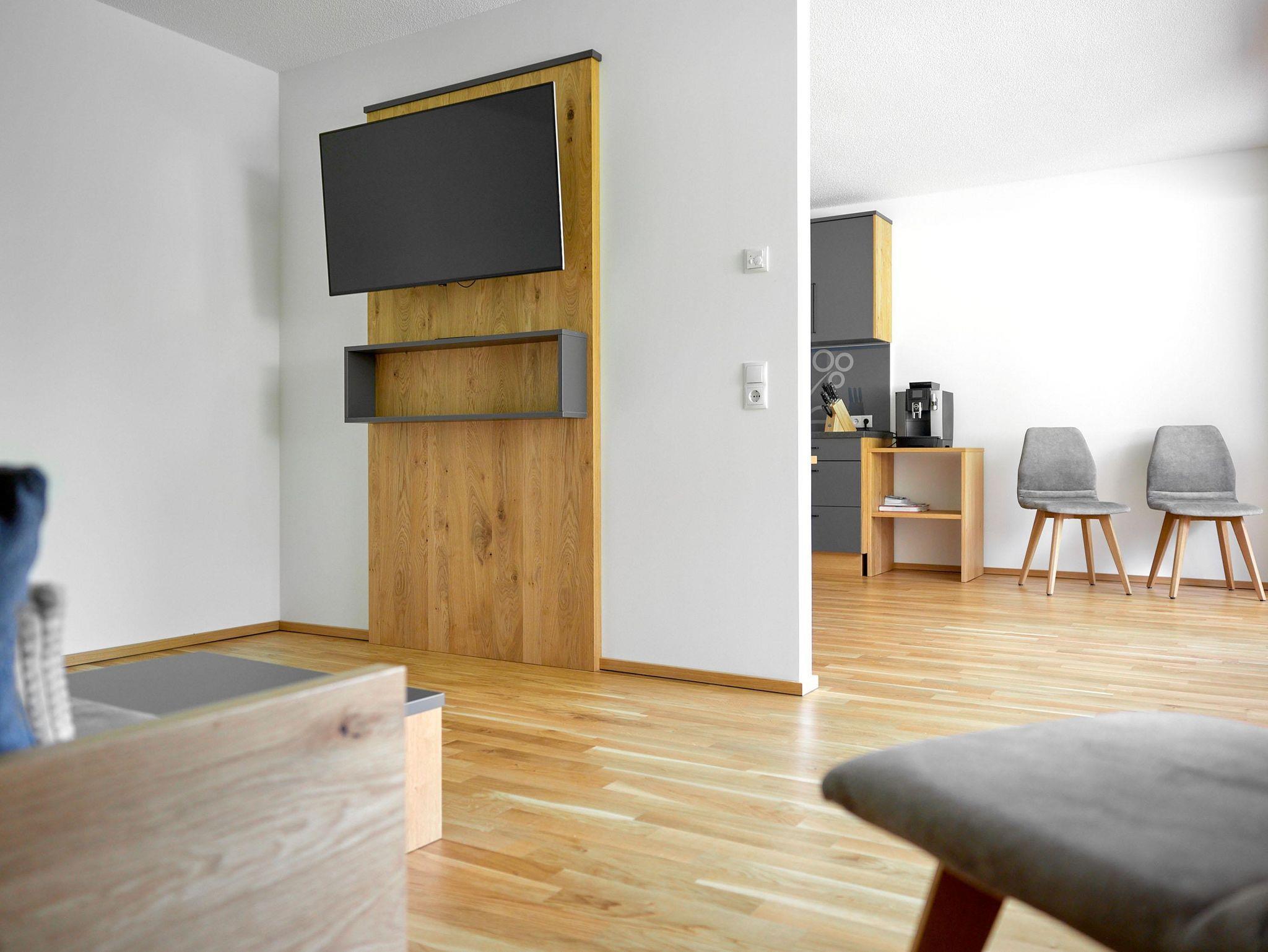 Willkommen im Zapfig Living Apartment 12, Deinem perfekten Rückzugsort für einen erholsamen Aufenthalt. Die 80 m² Unterkunft im 1.Stock bietet ein gemütliches Wohnzimmer inkl. ausziehbaren Kingsizebett mit Smart-TV, 2 Schlafzimmer (Kingsizebett+ausziehbares Einzelbett+Smart-TV) sowie eine voll ausgestattete Küche. Die 2 Badezimmer verfügen über Dusche und WC. Genieße den Komfort einer eigenen Unterkunft+entspanne in alpiner Umgebung. Vom Balkon mit Liegenstühlen besteht Bergblick.