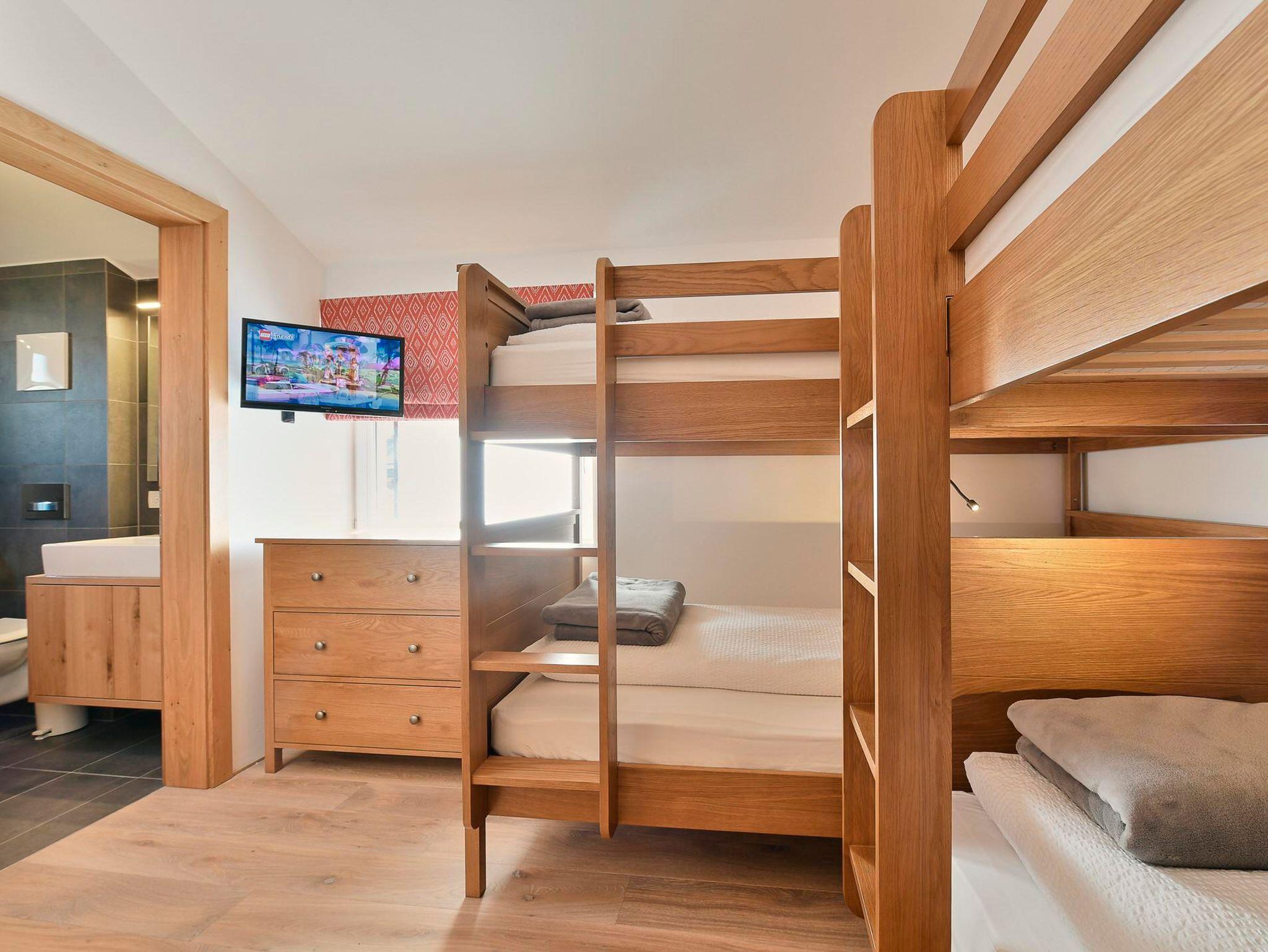 • 1 Zimmer mit zwei Stockbetten und Fernseher