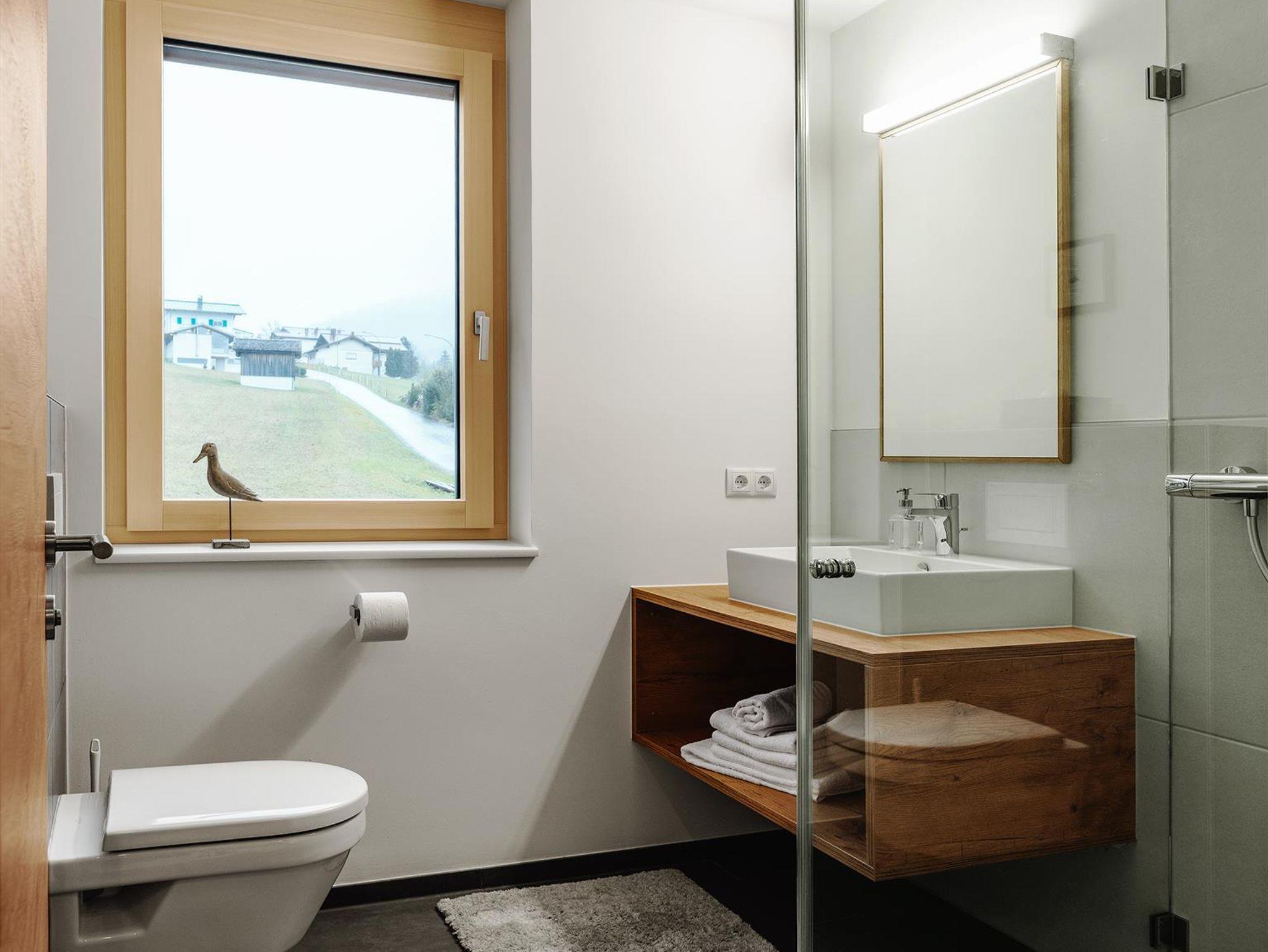 Sie parken bequem in der Tiefgarage. Von dort erreichen Sie Ihren eigenen Skiraum mit Skischuhtrockner- und Aufbewahrung. Ein Lift bringt Sie in den 1. Stock, dort treten Sie ein in das Verwall Apartment Arlberg.