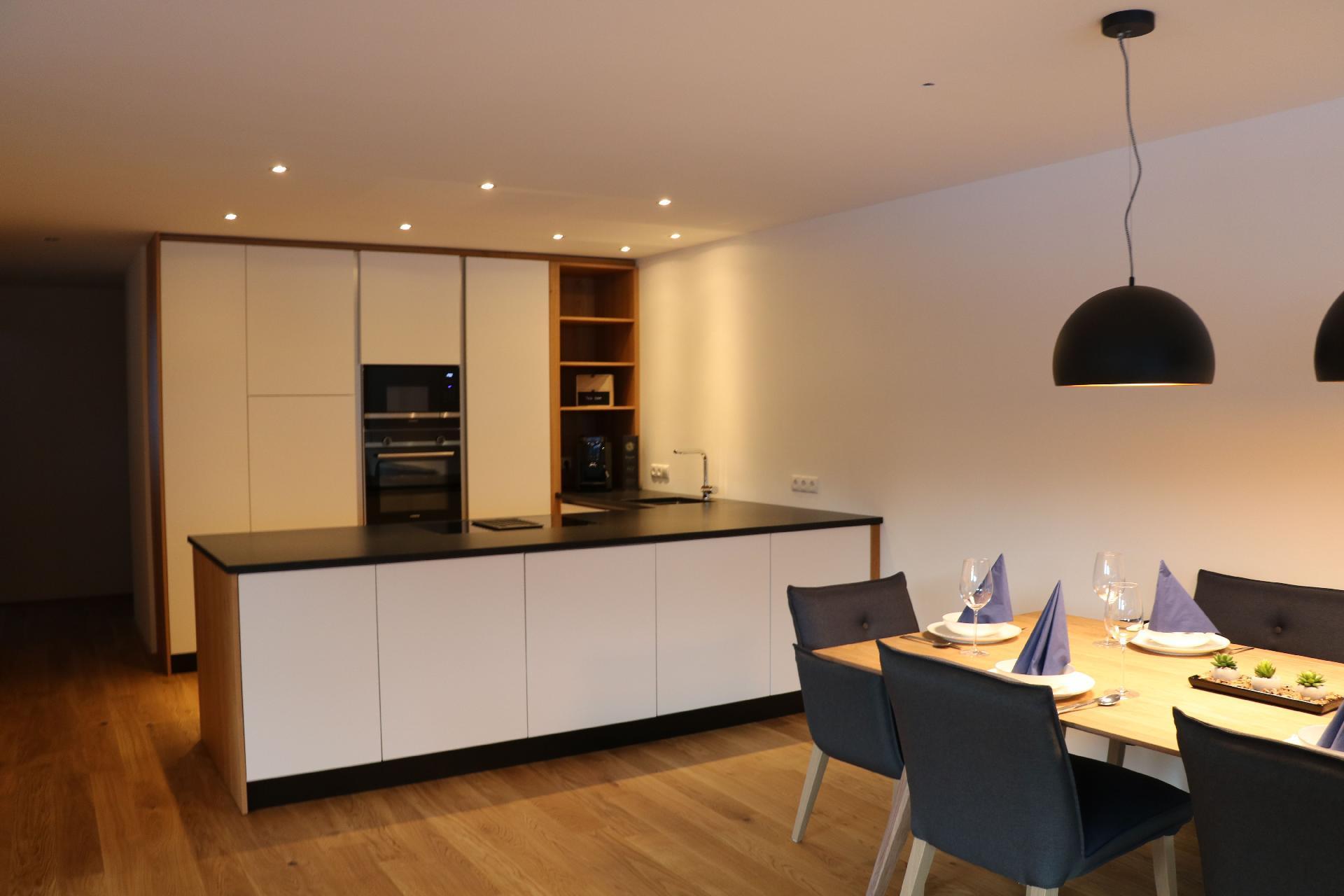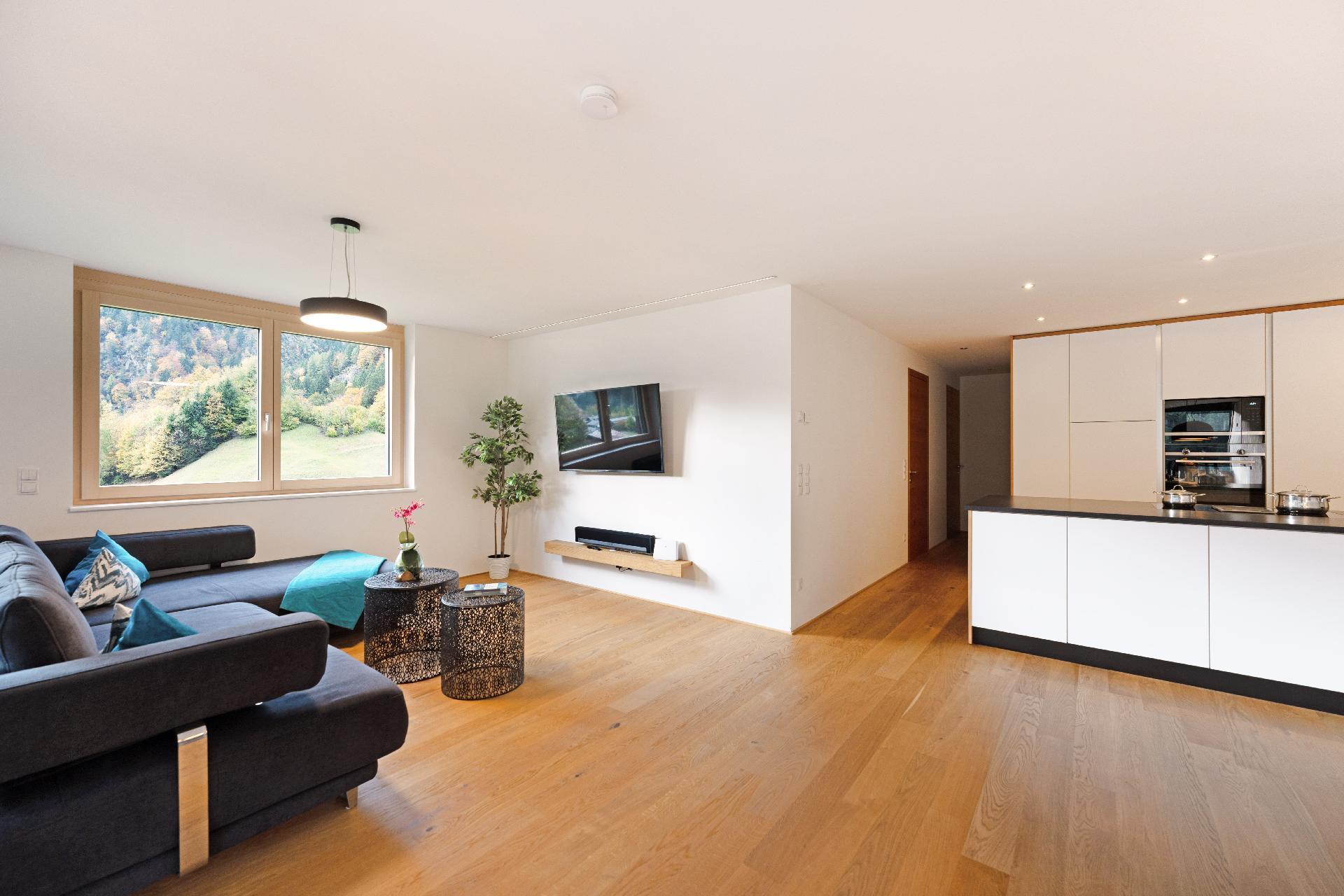 The property was completed in October 2020 and has 10 units. The Top 5 holiday flat is a 4-room flat with 3 large bedrooms, which have a double bed, wardrobe and all other amenities. Thanks to the very spacious sofa, even a group of 8 people can easily spend their holiday in the flat. Should this ever be the case, a second WC provides a certain amount of privacy. The kitchen is fully equipped, so visitors are free to prepare their own meals. Thanks to the washing machine with tumble dryer function, the flat can also be booked for longer periods without having to travel with excess luggage. The car is conveniently parked in the underground car park, guaranteeing easy loading and unloading. The flat has all amenities, such as a sound system, modern TV, WLAN and a large balcony for a cosy breakfast in the morning or relaxing in the evening. The final cleaning must be carried out by the customer.