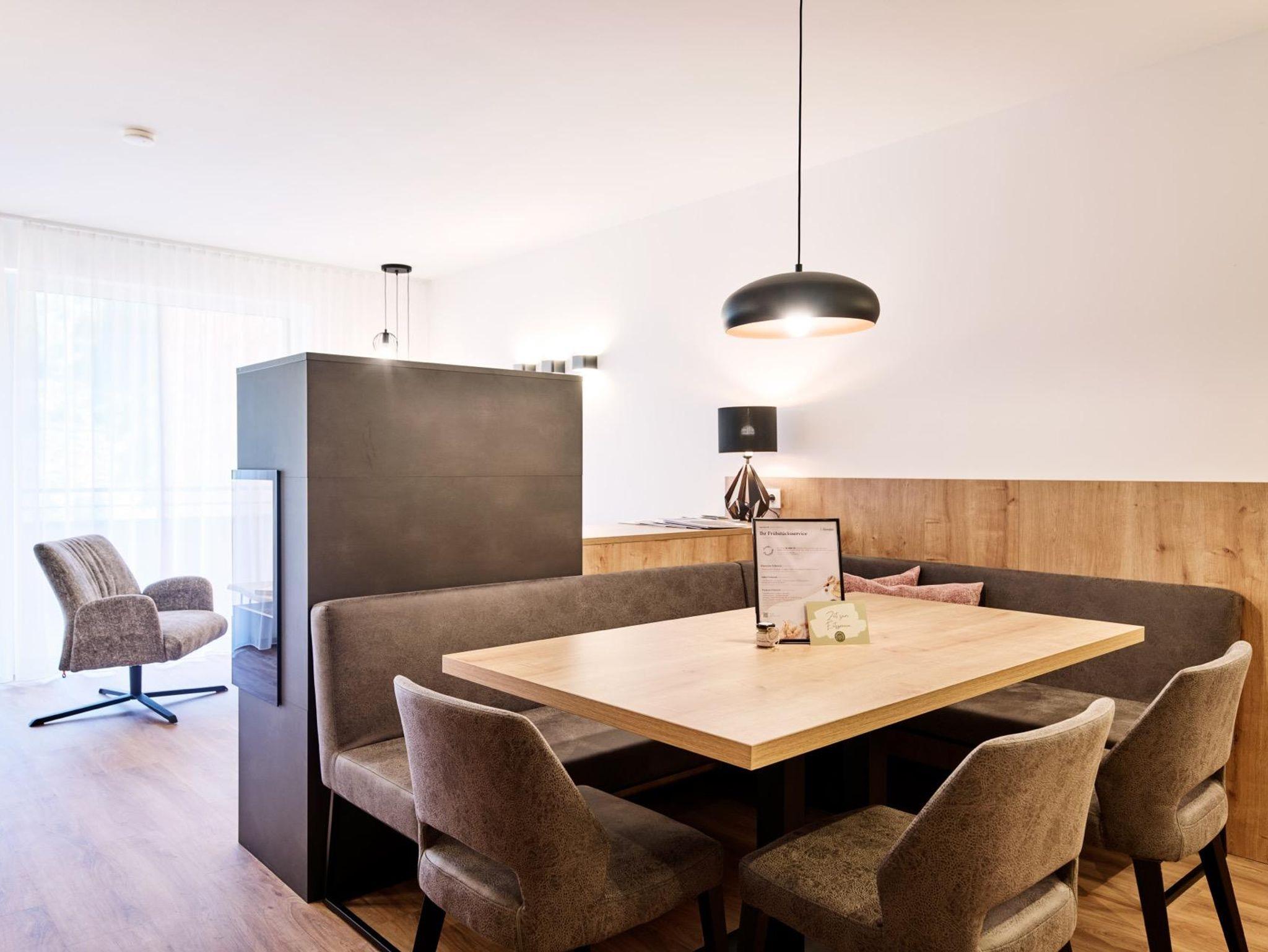Der gemütliche Wohnbereich bietet reichlich Platz für gesellige Abendessen mit der Familie. In Gehnähe zur Unterkunft befindet sich der Skilift Oberdamüls (200m) und der Dorfkern mit Lebensmittel- und Sportgeschäft.
