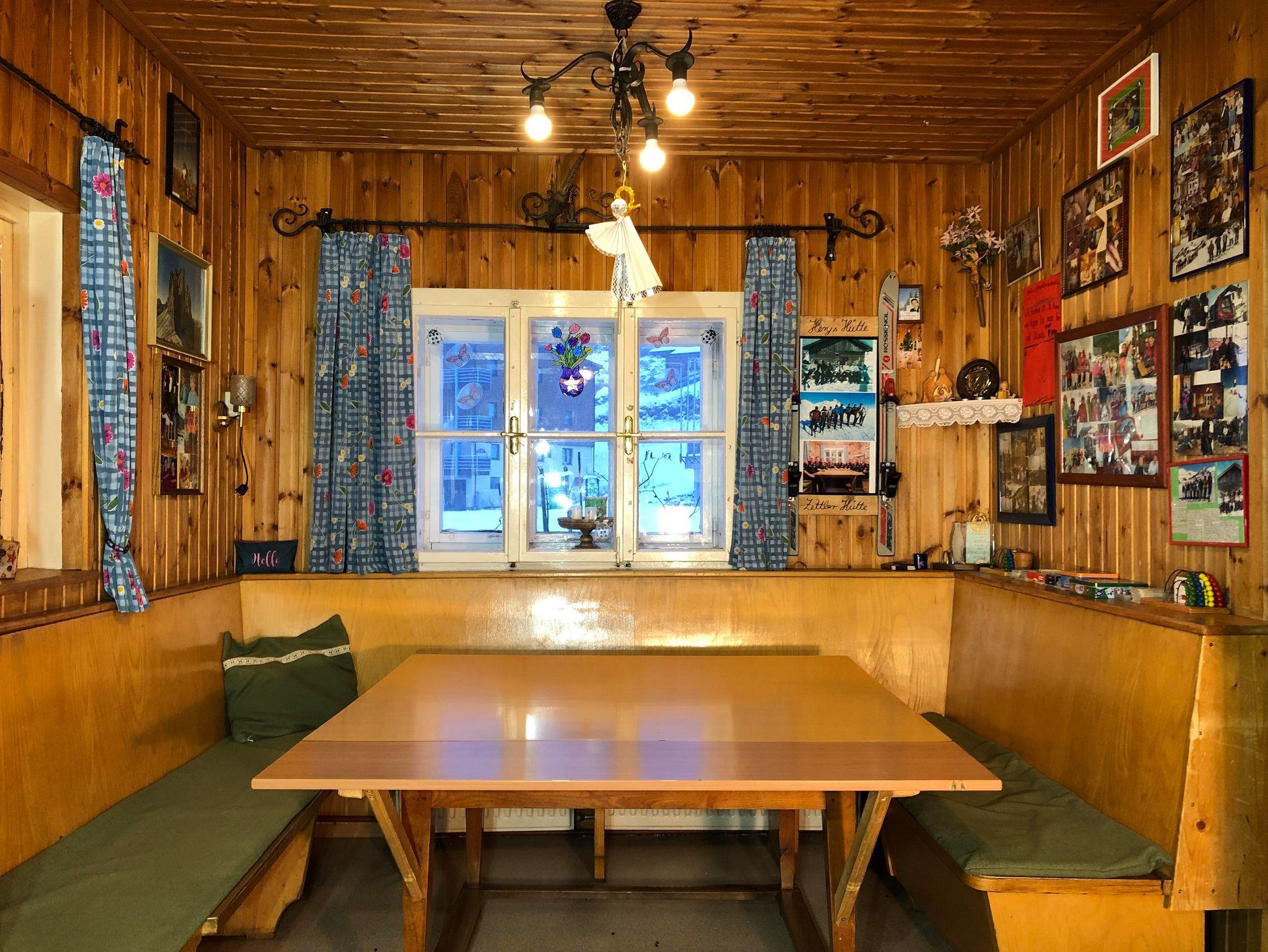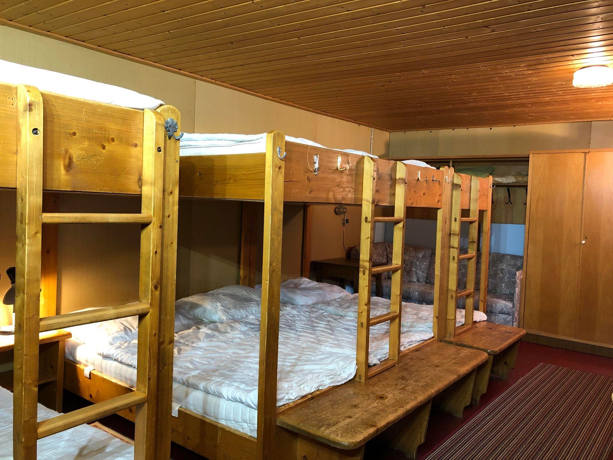 Selbstversorgerhütte mit Wohnküche mit großer Sitzecke und Schlafraum mit Stockbetten für 10 Personen