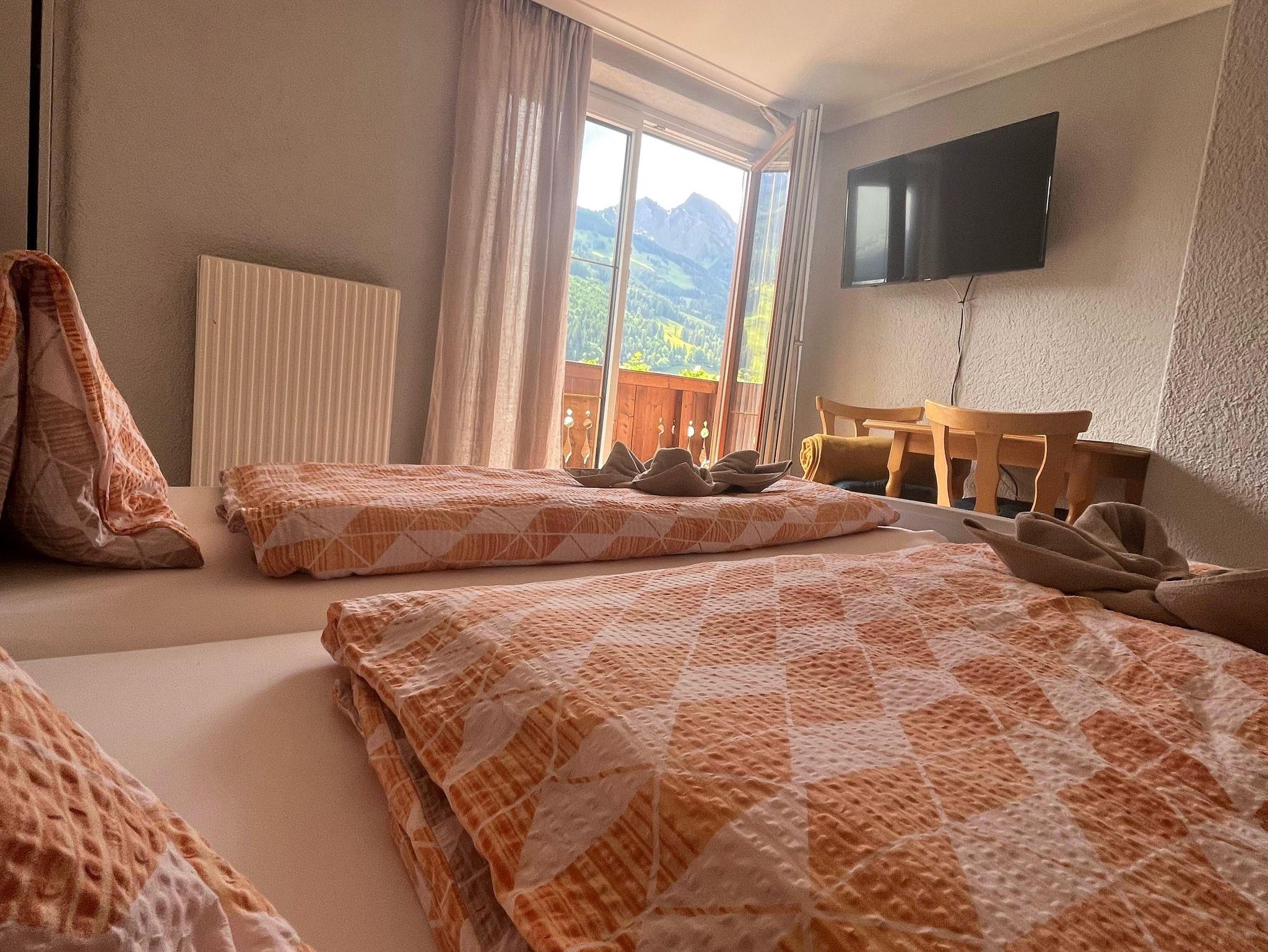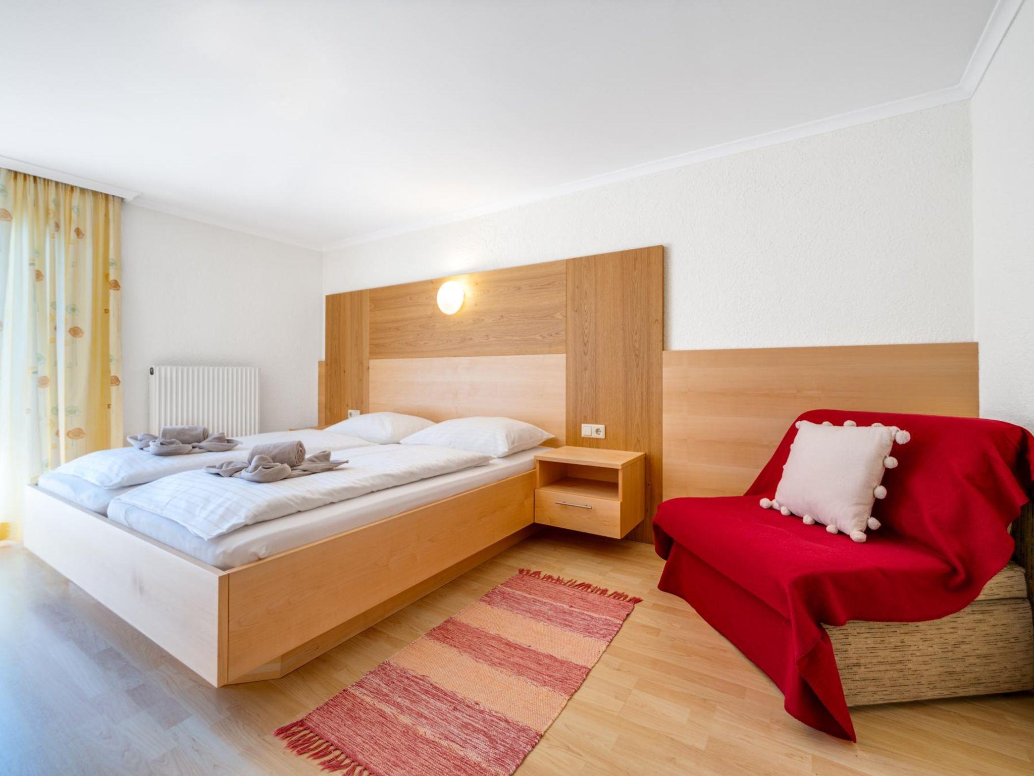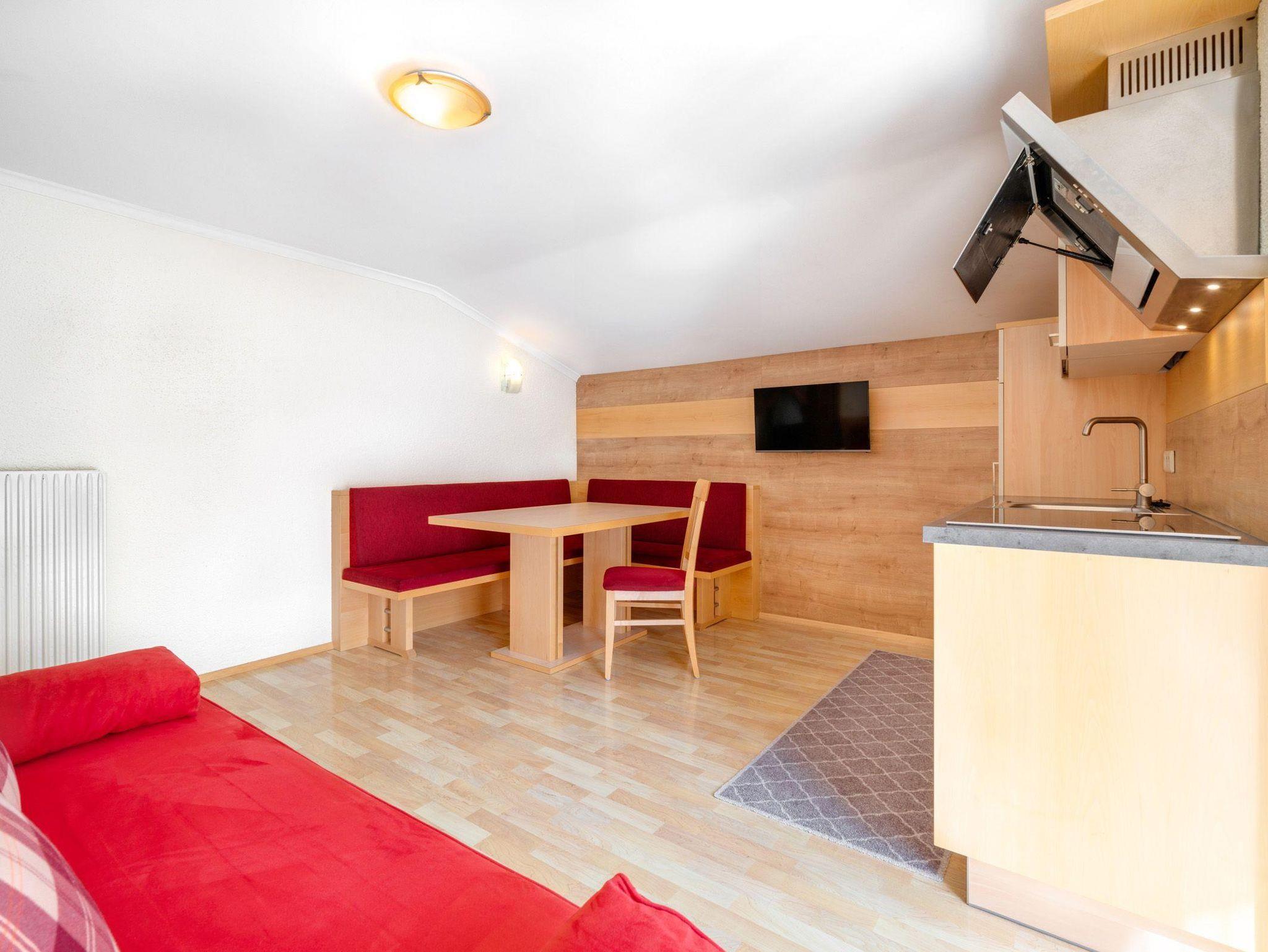 2-4 Personen, Wohnraum mit Küche, Sitzecke, Schlafcouch (200cm x 200cm), Bad mit Dusche und WC, Doppelzimmer mit kleinem ausziehbaren Couchsessel, 2. Stock, Ostbalkon mit Morgensonne