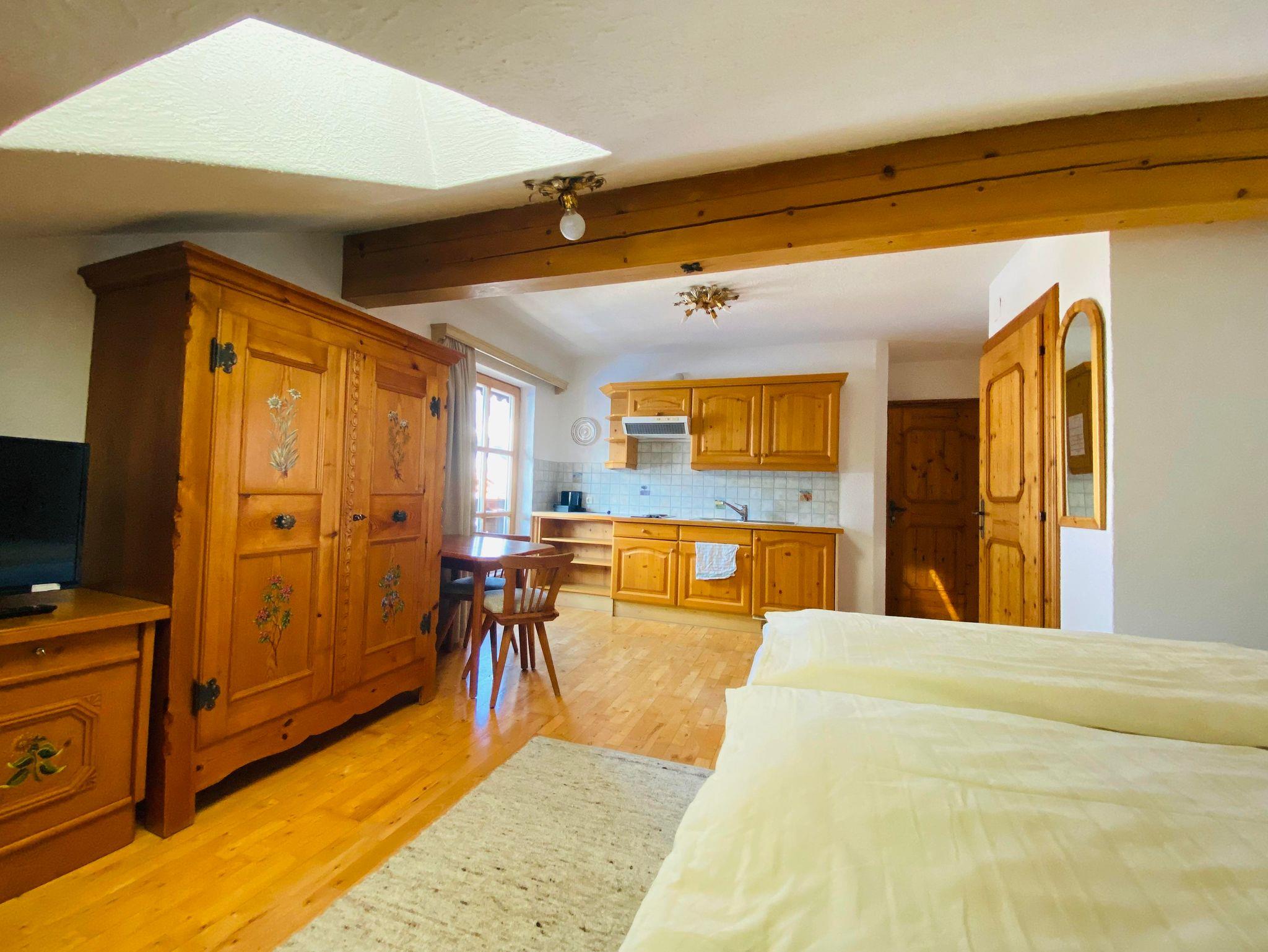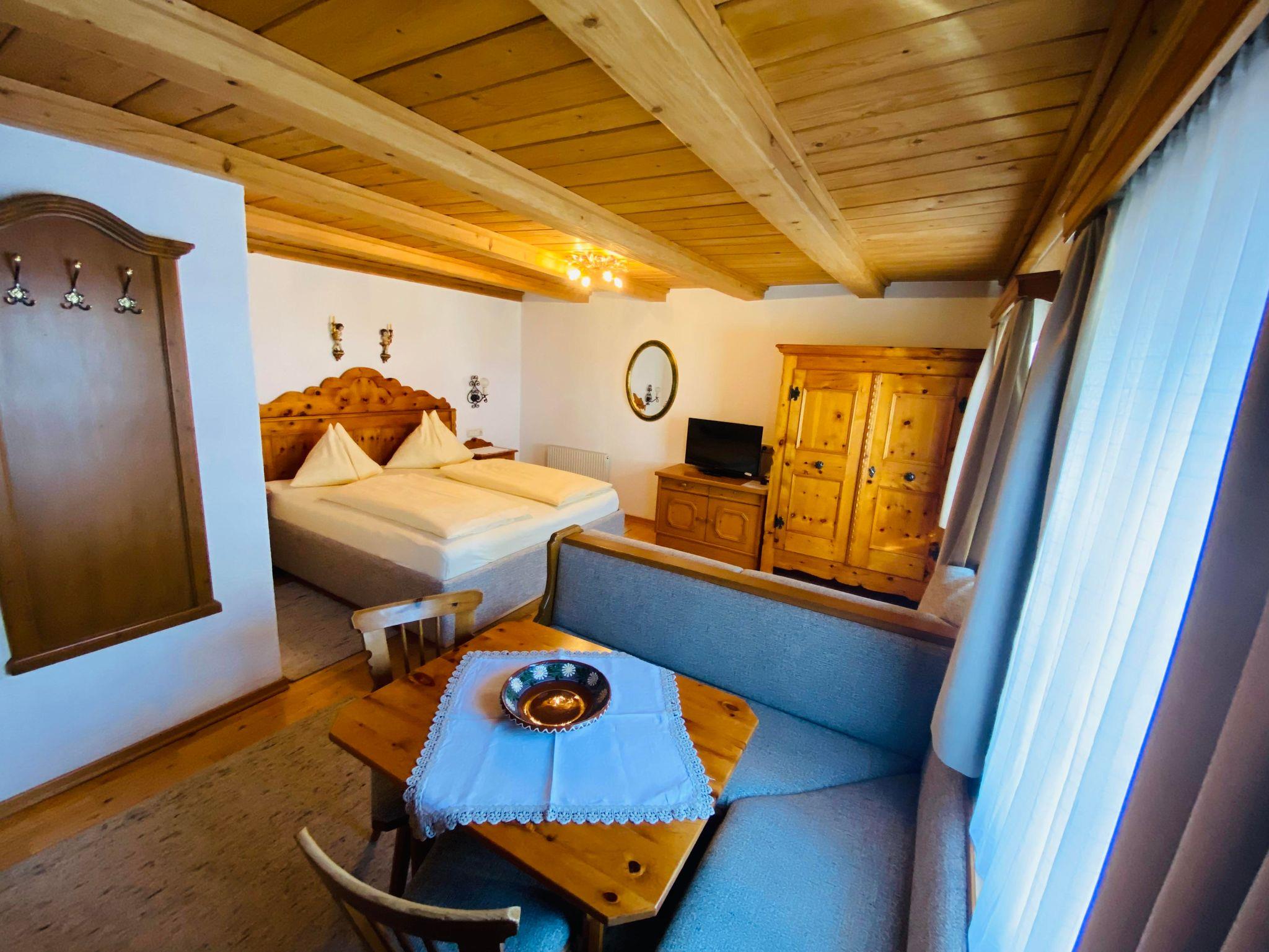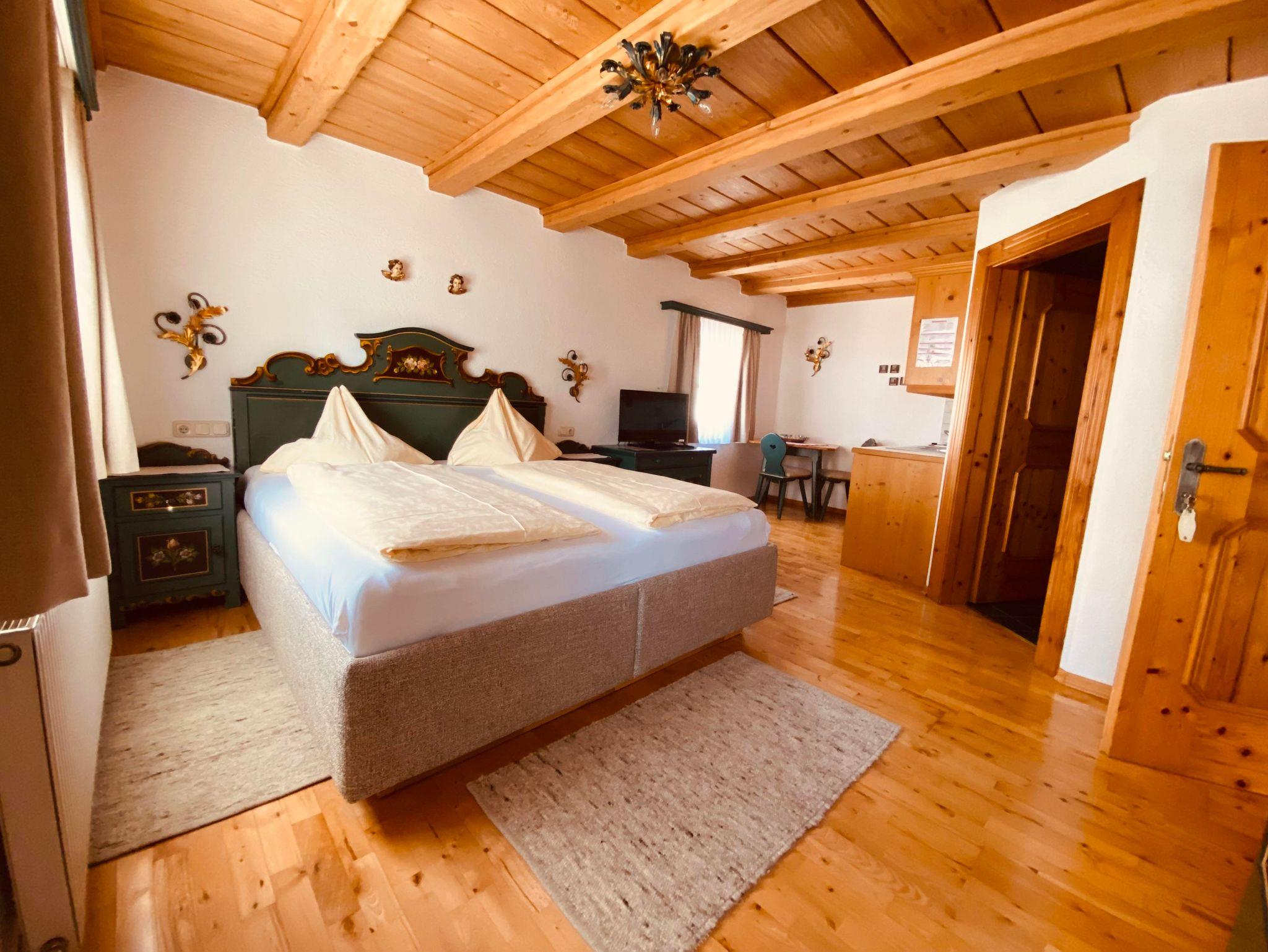 Die originale Holzdecke, die naturbelassenen Böden und die warmherzige Einrichtung verleihen jedem Zimmer beim Eintreten diesen typisch bäuerlichen Dorfcharme, der sofort zum Wohlfühlen einlädt.