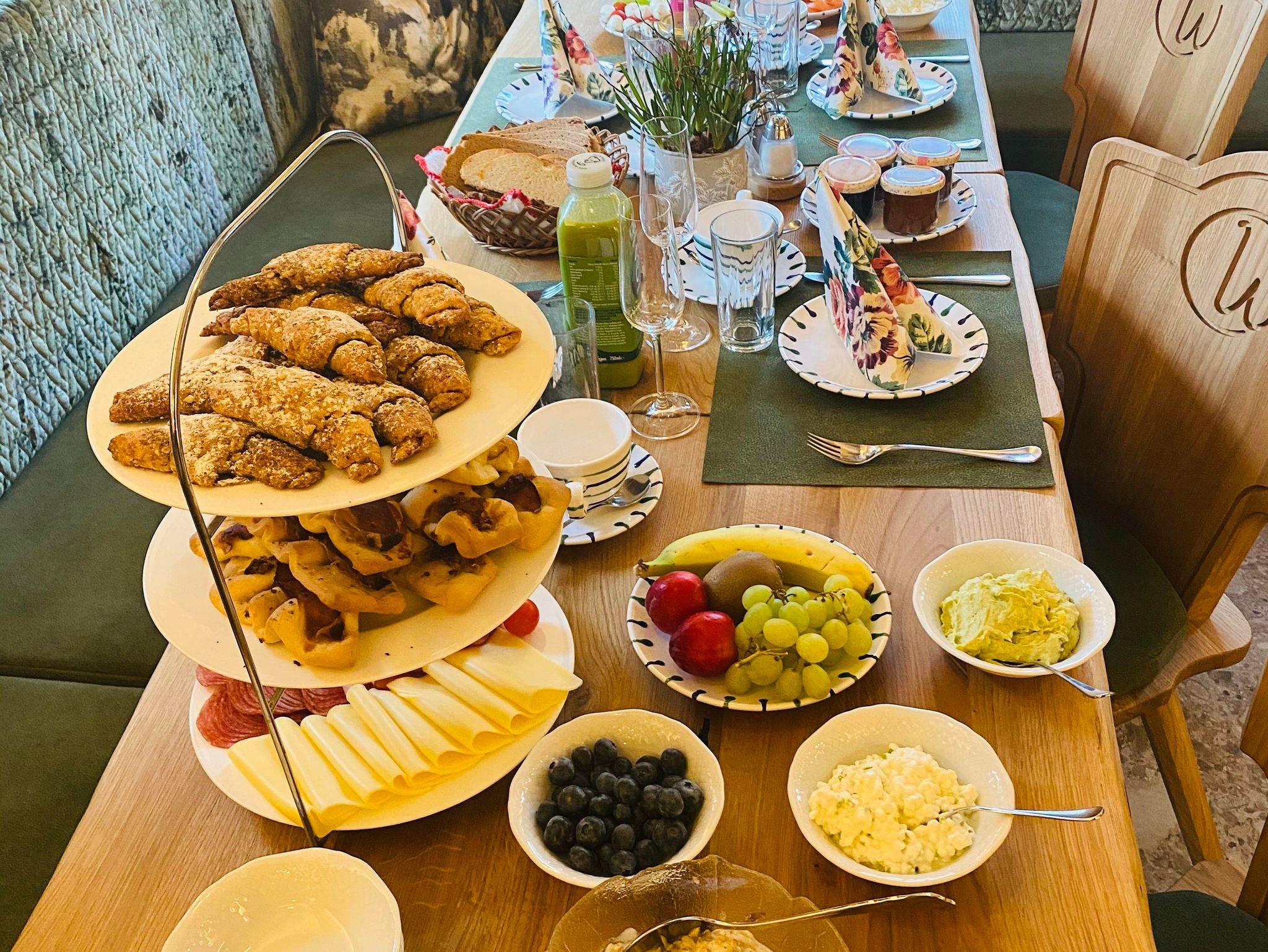 Am Morgen verwöhnen wir Sie mit einem regionalen, mit viel Liebe zubereiteten Frühstück aus hofeigenen Produkten.