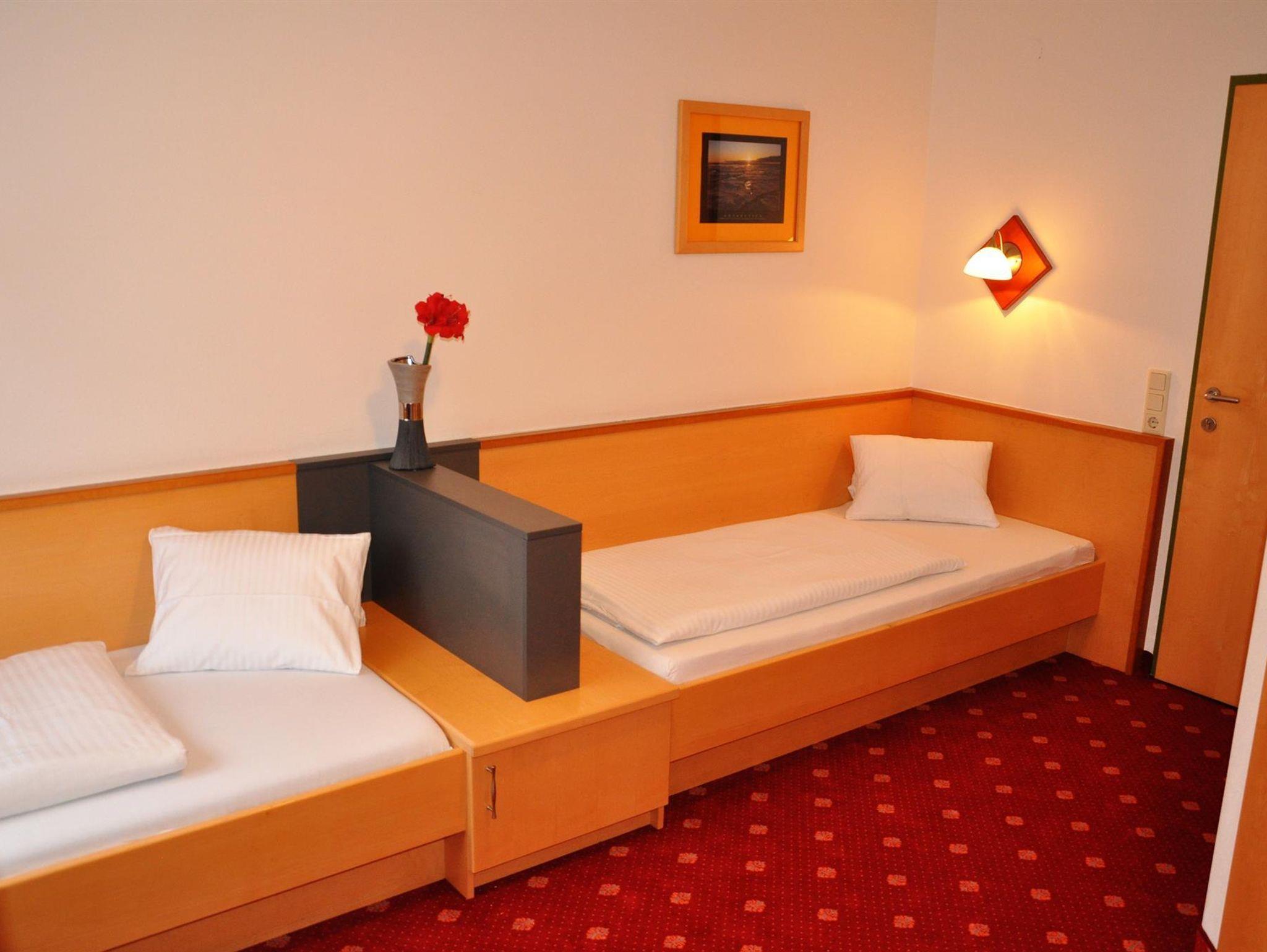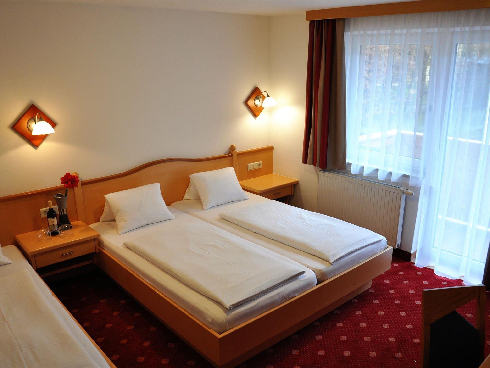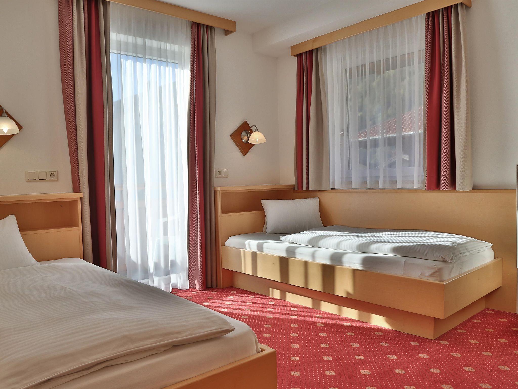 Gemütlich eingerichtete Dreibettzimmer mit Dusche und WC, Haarföhn, Kosmetikspiegel, Kabel Flat- TV, Radio, Schreibtisch, W-Lan, Internetanschluß, Safe und Balkon.