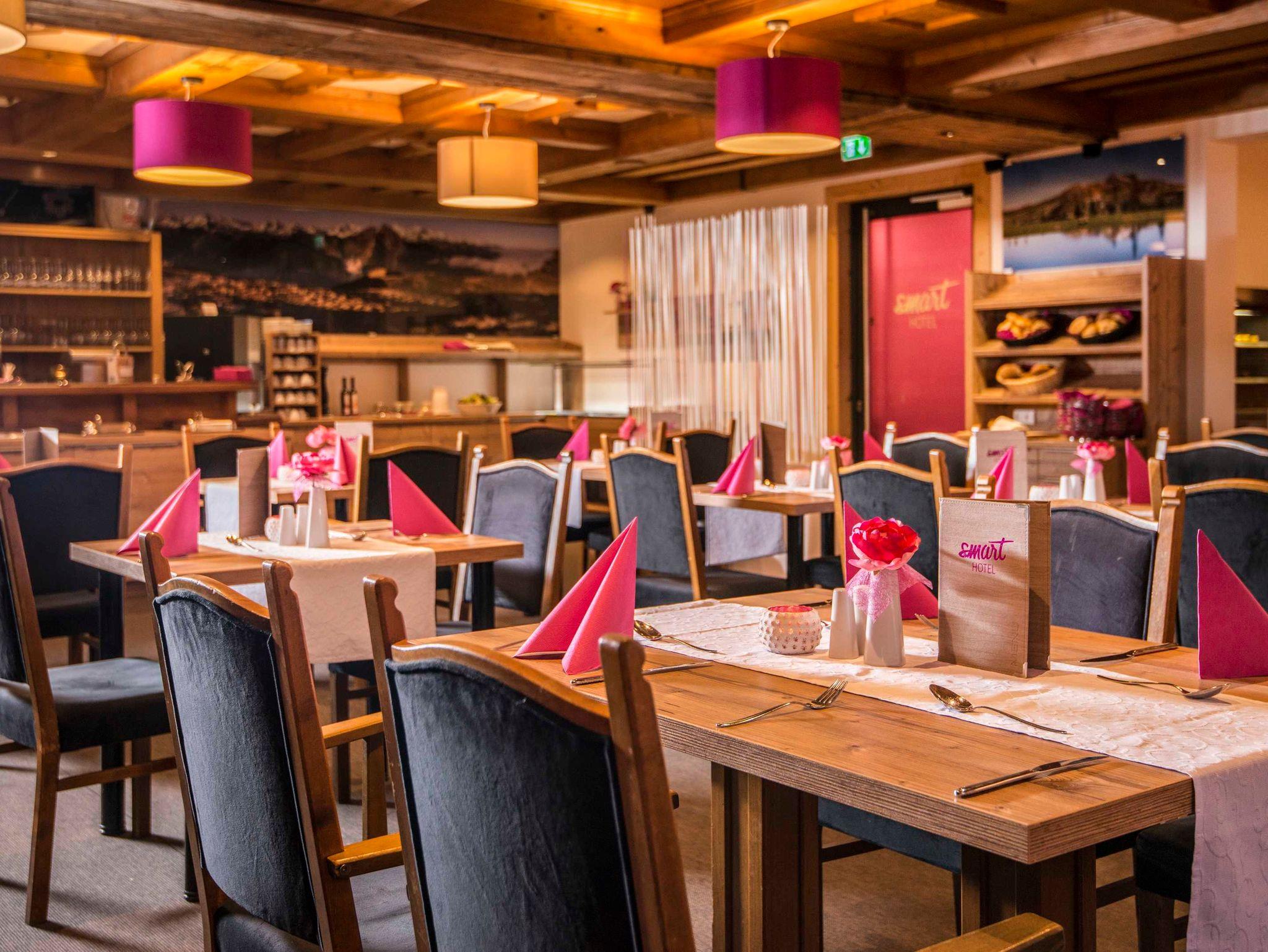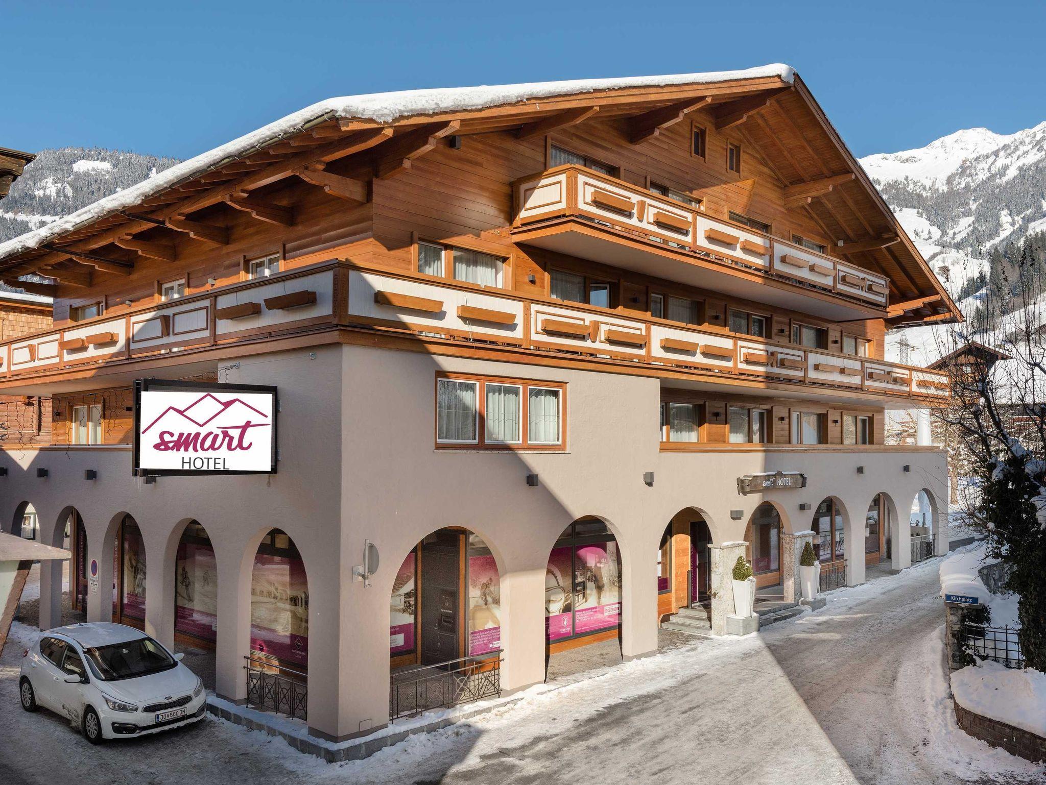 Unser im modernen Alpinschick gestaltetes Hotel strahlt lockere Behaglichkeit aus, die sowohl in den neu renovierten Doppel- und Familienzimmern oder den smartSUITES, als auch in unseren smartFLATS für bis zu 6 Personen zu spüren ist.