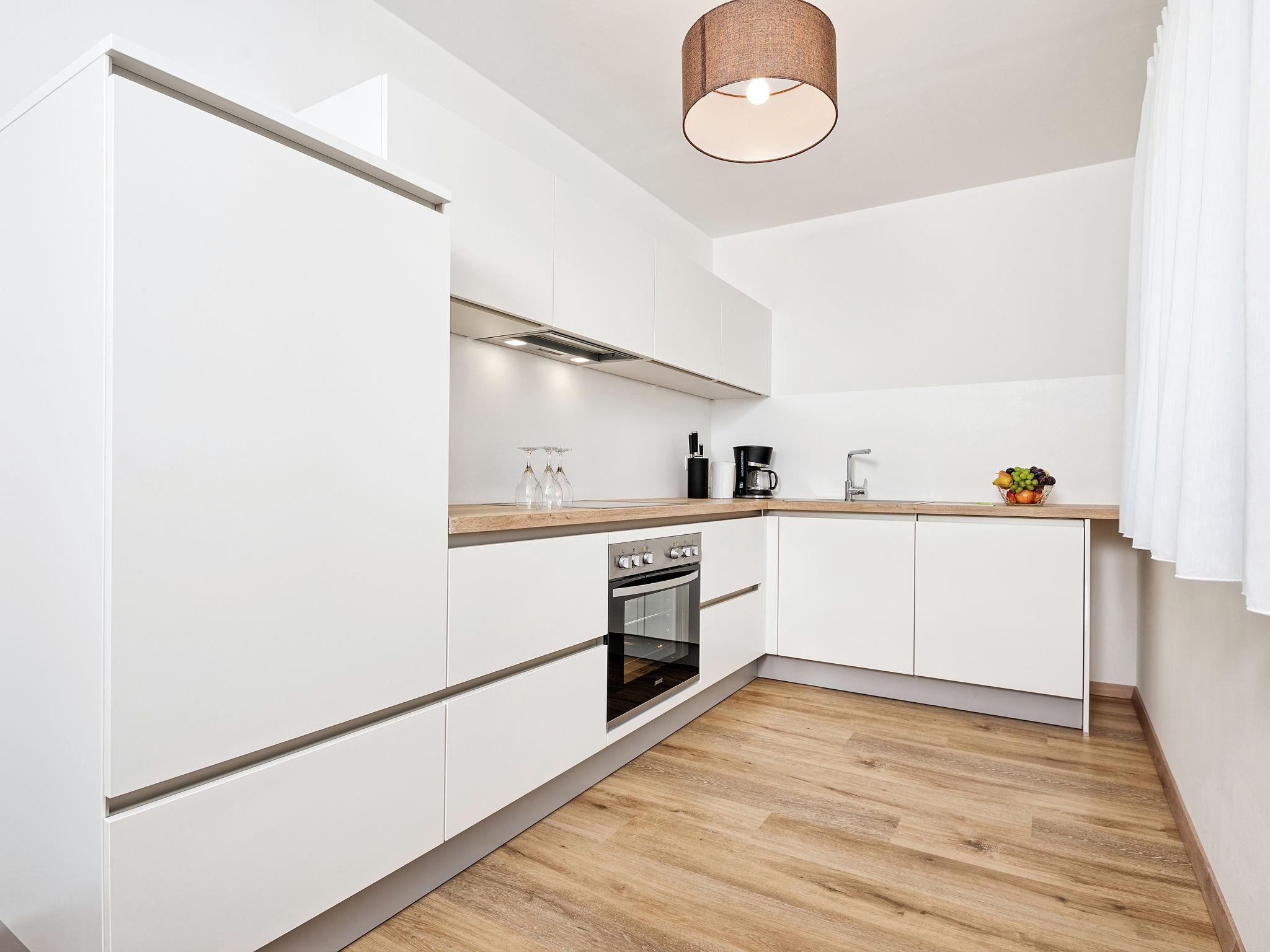 "Deutschbauer", 3-room apartment 56 m2 on 1st floor. Object suitable for 4 adults + 2 children. Bright, modern furnishings: living/sleeping room with 1 double sofabed (1 x 140 cm, length 200 cm), dining table and satellite TV. Exit to the balcony. 1 double bedroom with satellite TV. 1 double bedroom. Open kitchen (oven, dishwasher, 4 ceramic glass hob hotplates, toaster, kettle, electric coffee machine). Shower/WC. Air-conditioning, underfloor heating. Balcony 10 m2. Balcony furniture. Facilities: children's high chair, baby cot. Internet (WiFi, free). Parking (1 car) at the house. Please note: smoke alarm.