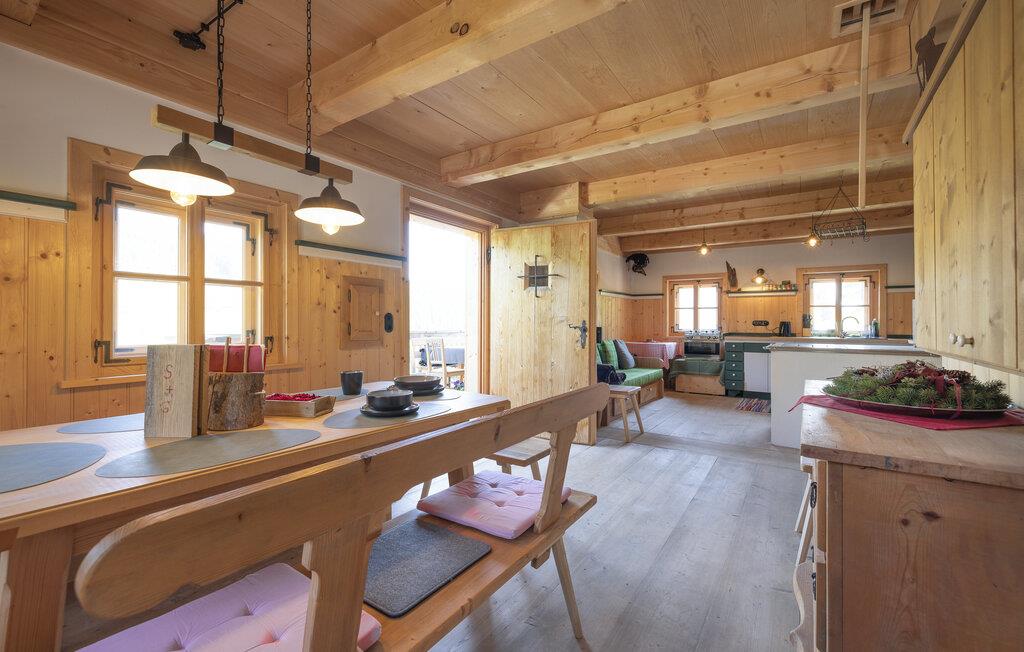 Tilbring afslappende dage i dette traditionelle feriehus i hjertet af Salzburg-Alperne. Den idylliske beliggenhed lægger op til at lægge hverdagen bag sig og nyde naturen fuldt ud. Træd ind i en hyggelig, levende verden fuld af alpin atmosfære. Møblerne er rustikke og kærligt designet. Masser af naturtræ, traditionelle møbler og charmerende detaljer skaber en autentisk hytteatmosfære. Lav mad sammen i det praktisk indrettede køkken, og nyd måltiderne i den rummelige stue, der lægger op til at blive hængende med bænke og træbord.
