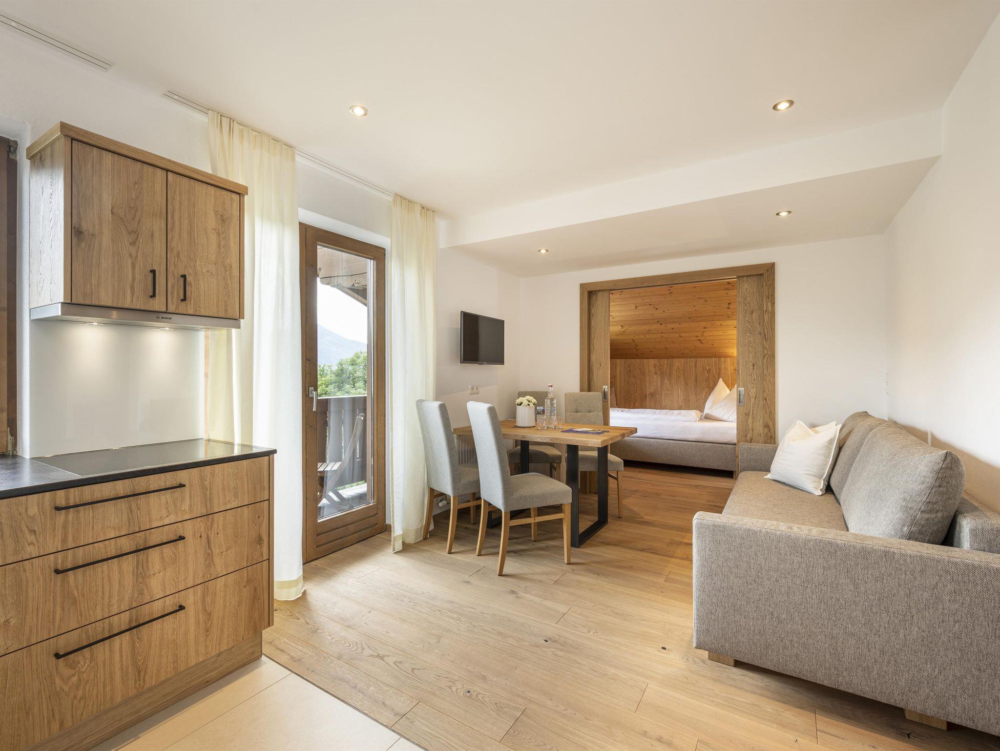 Unsere Appartements: Neu, modern & mit Naturmaterialien eingerichtet – hell, gemütlich und bestens ausgestattet. Sie bieten Platz für 1–5 Personen und sind ideal für Paare wie Familien.