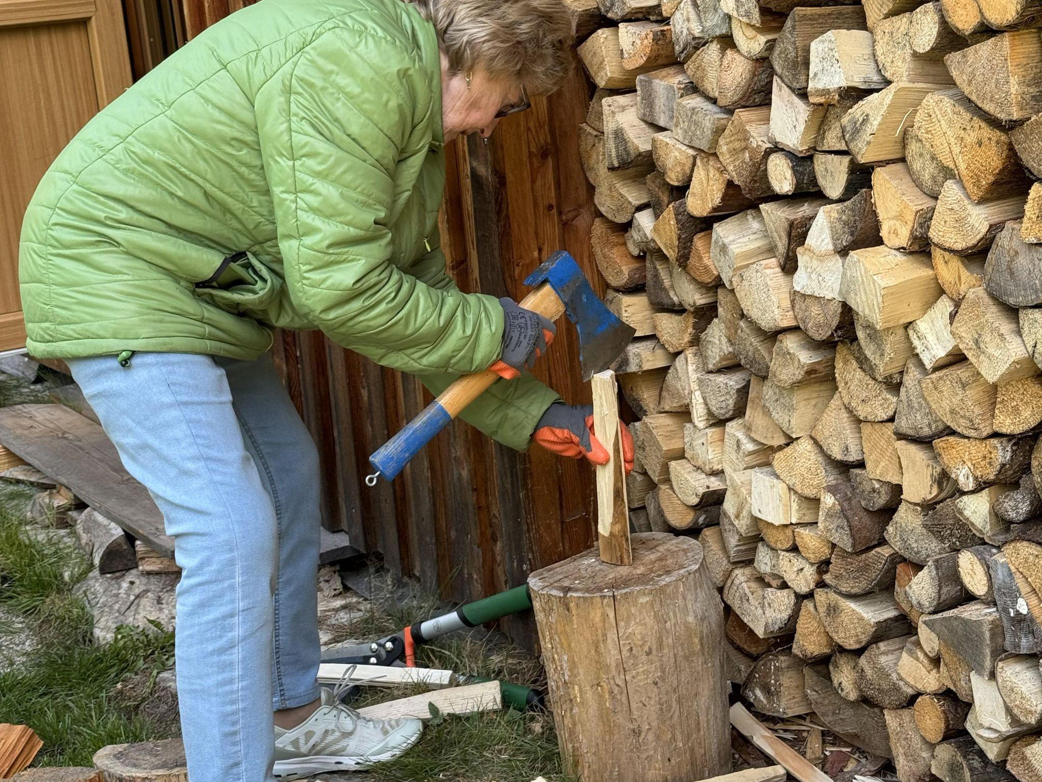Ofenfeuer wärmt das Nocksternchen mit dem Holz das vor der Hütte bereitliegt.
