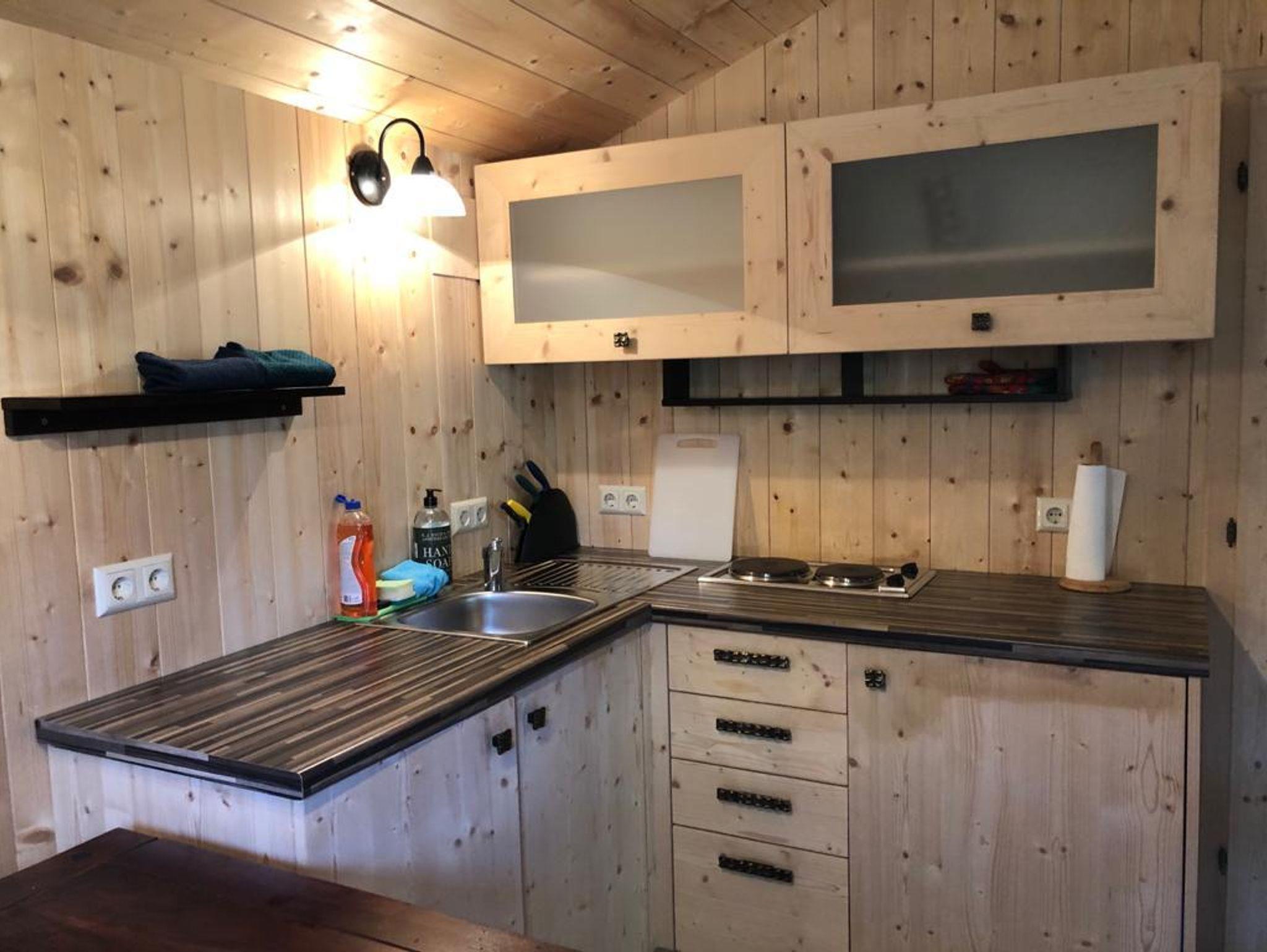 Es gibt Strom, Warmwasser, TV, WLAN, Kaffeemaschine, Toaster, Wasserkocher und Kühlschrank. Die Küche ist für einfache Gerichte bestens ausgestattet.