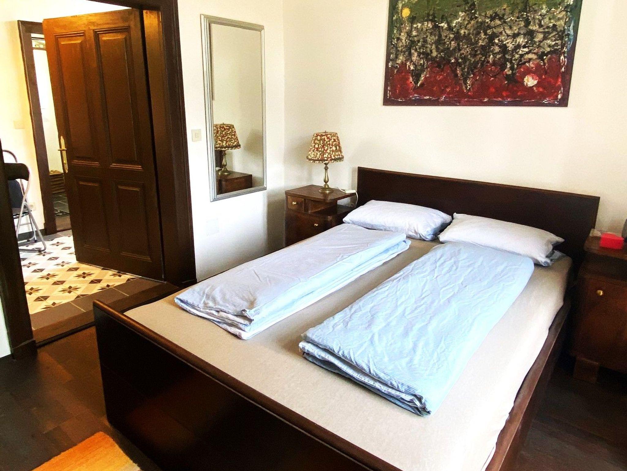 1. Schlafzimmer Doppelbett mit 160 cm Breite mit Kasten, Fliegengitter und frischer Bettwäsche
