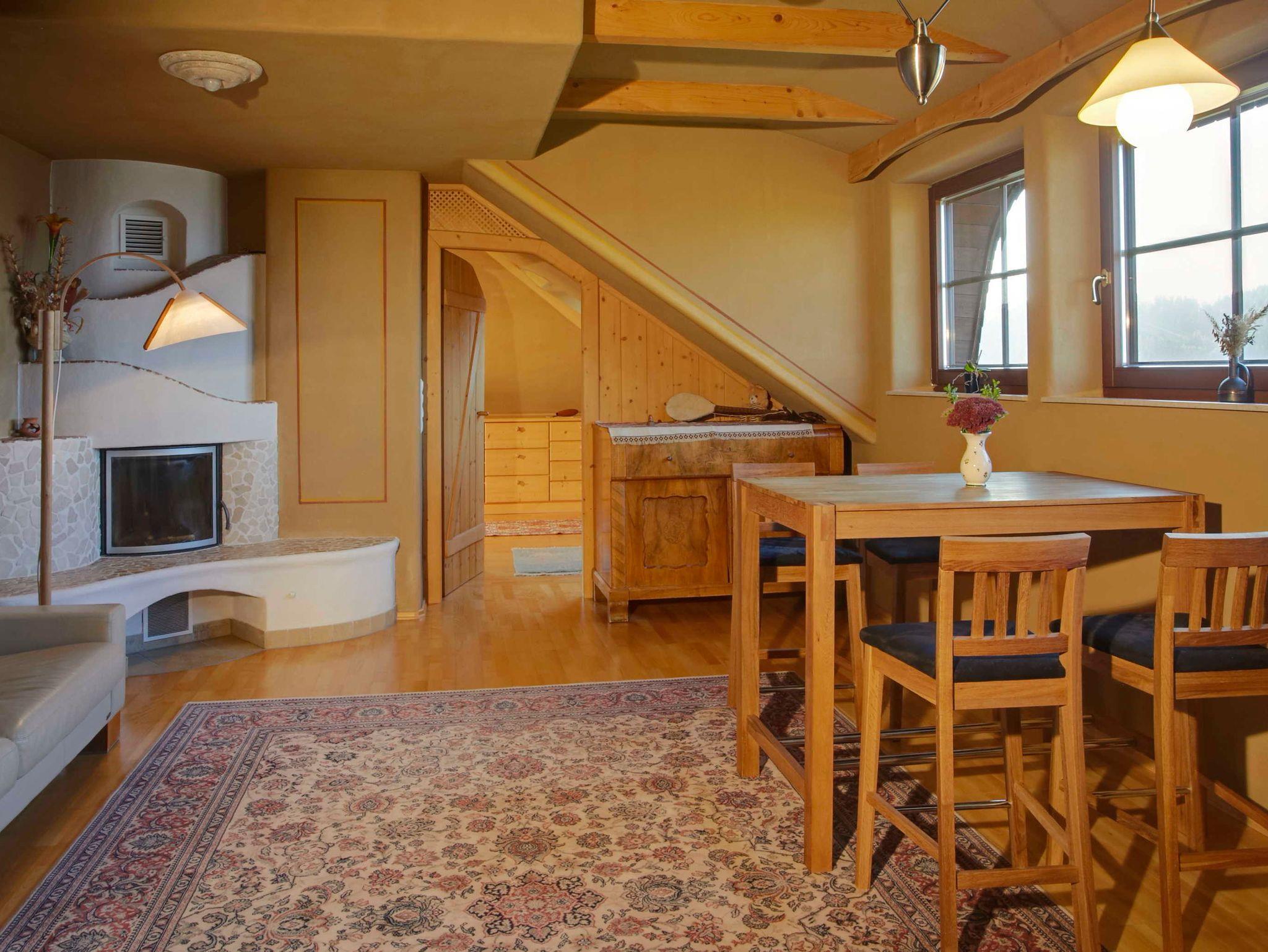 Panorama-Dachappartement, 50 qm, 2 bis 6 Personen, Lehmputz, Miniküche, Kinder getrennt