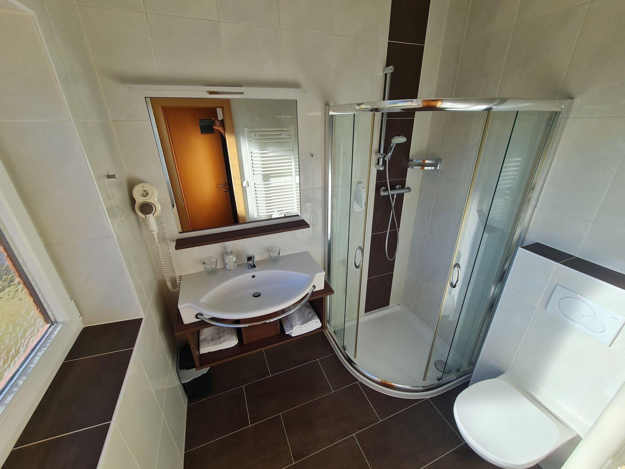 Das Doppelzimmer Nr. 6 bietet modernen Komfort für zwei Personen und einen schönen Talblick, auch ohne Balkon.