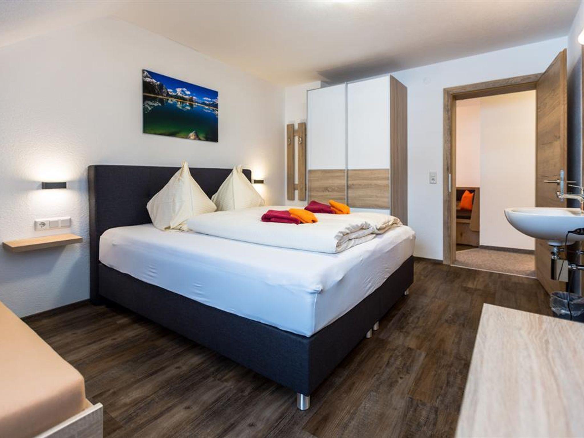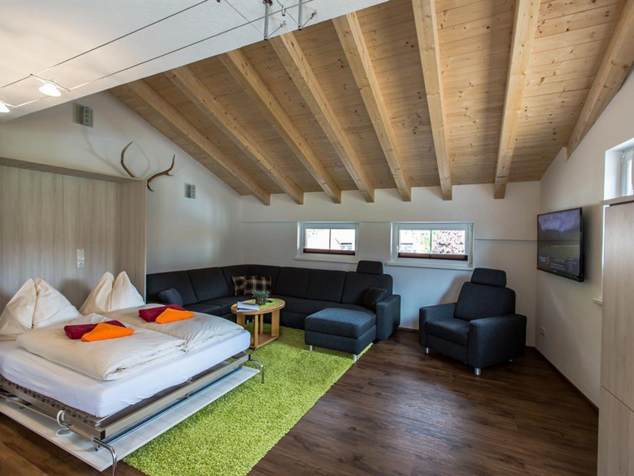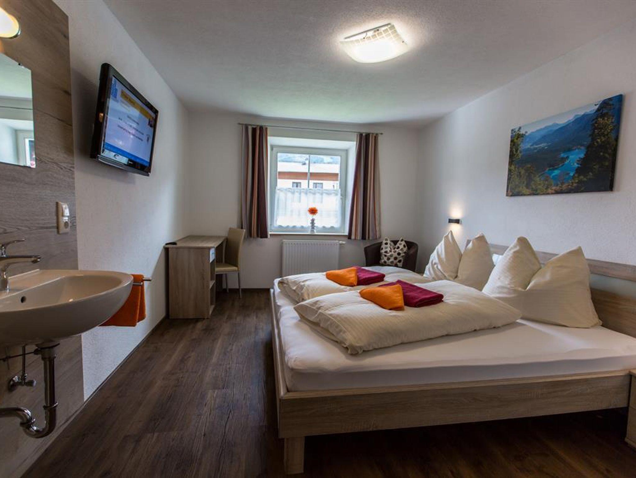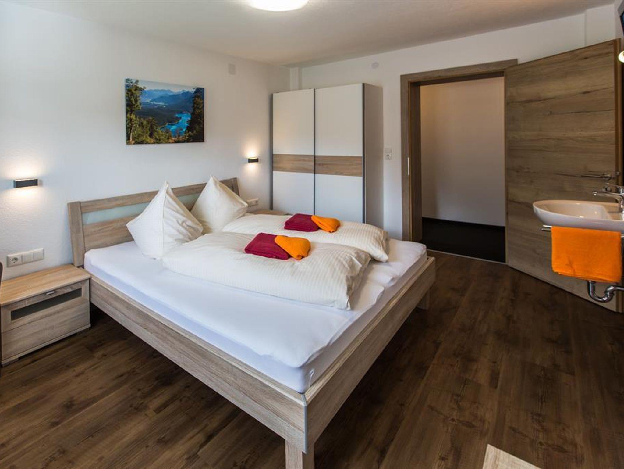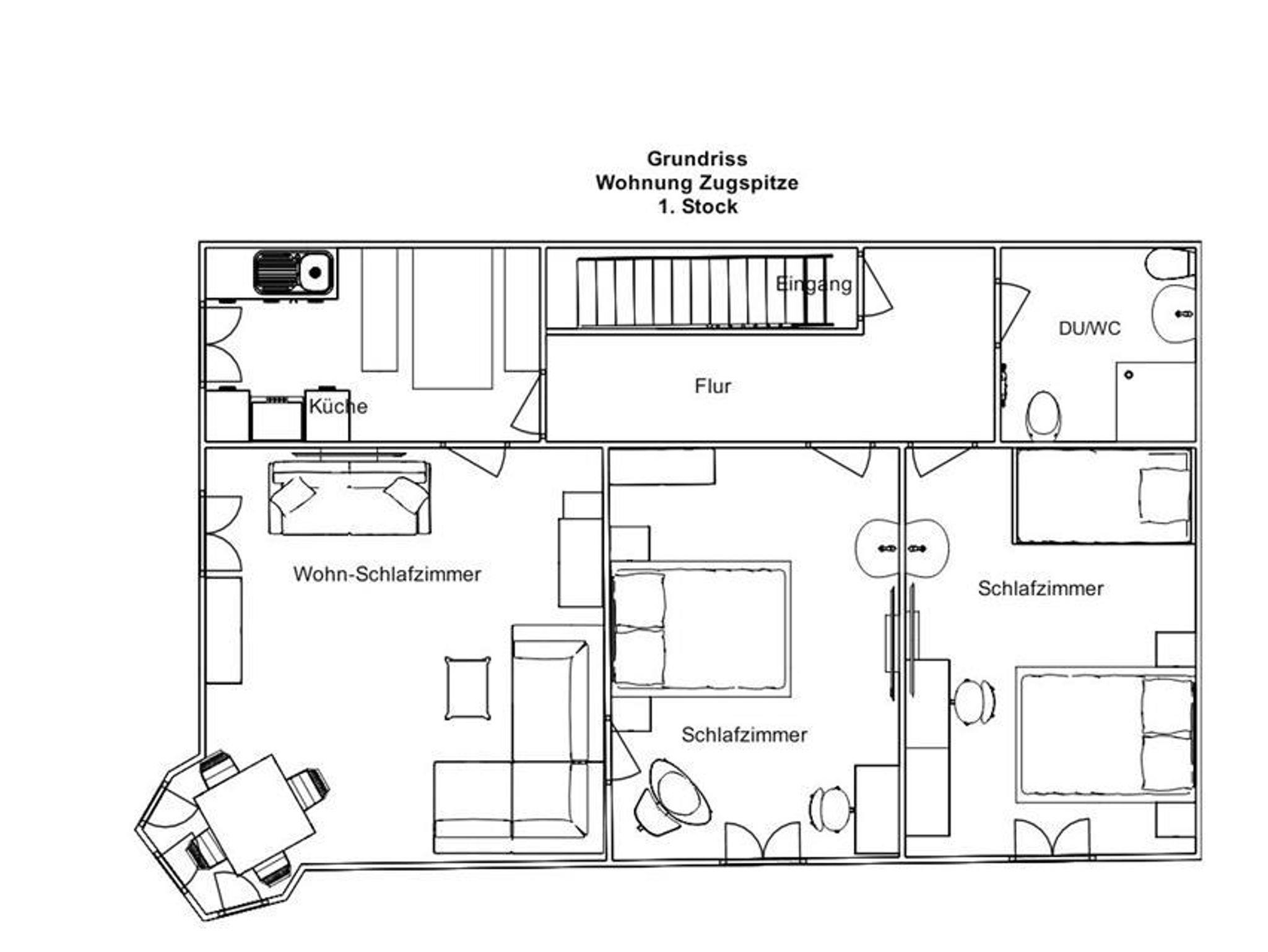 Neu eingerichtete Ferienwohnung Zugspitze mit 70m2 im 1. Sock Schlafzimmer mit Doppelbett und Einzelbett (Bettwäsche vorhanden), Waschbecken und Flat-TV Weiteres Schlafzimmer mit Doppelbett (Bettwäsche vorhanden), Waschbecken und Flat-TV Wohn- Schlafraum mit ausziehbarer Schlafcouch, Erker, Esstischgruppe, Flat-TV. Komplett eingerichtete Küche - Elektroherd mit Backrohr , Kaffeemaschine(Tassimo), Geschirrspüler, Mikrowelle, Toaster, Tisch- und Kochgeschirr) mit gemütlicher Sitzecke. DU/WC (Frotteewäsche vorhanden) Internet via W-LAN