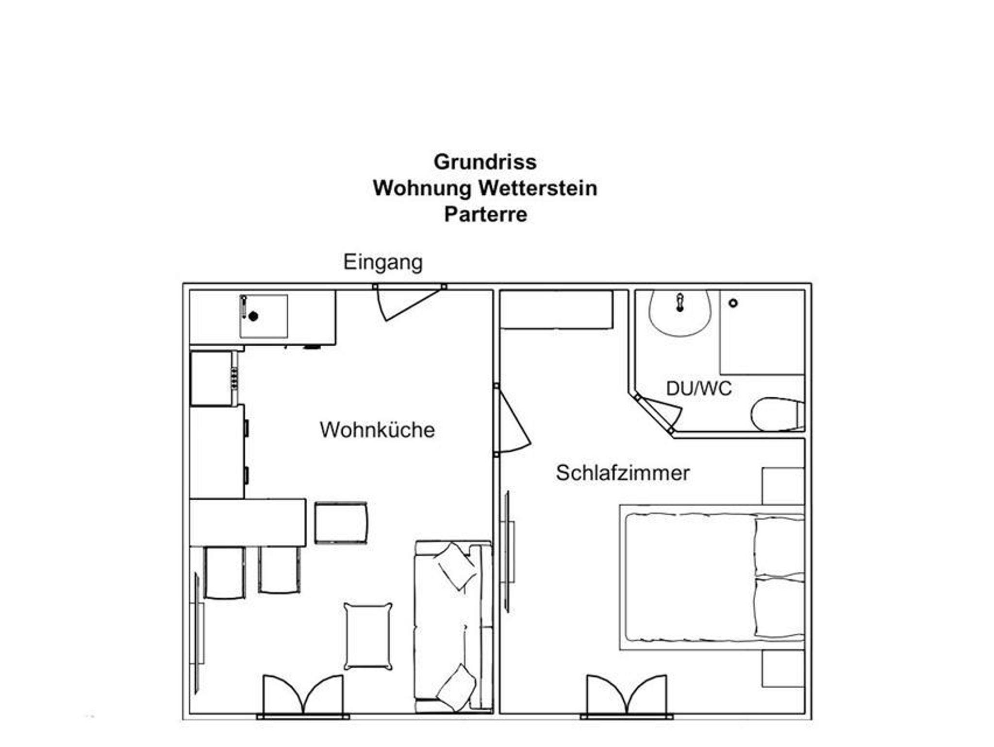 Neu eingerichtete Ferienwohnung Wetterstein mit 31m2 Separates Schlafzimmer mit Doppelbett (Bettwäsche vorhanden), Flat-TV Wohn-Küche mit gemütlicher Schlafcouch und Flat-TV. Die Küche ist komplett eingerichtete Küche mit Elektroherd inkl. Backrohr, Kaffeemaschine (Tassimo), Mikrowelle, Toaster, Tisch- und Kochgeschirr DU/WC bei Schlafzimmer (Frotteewäsche vorhanden) Internet via W-LAN