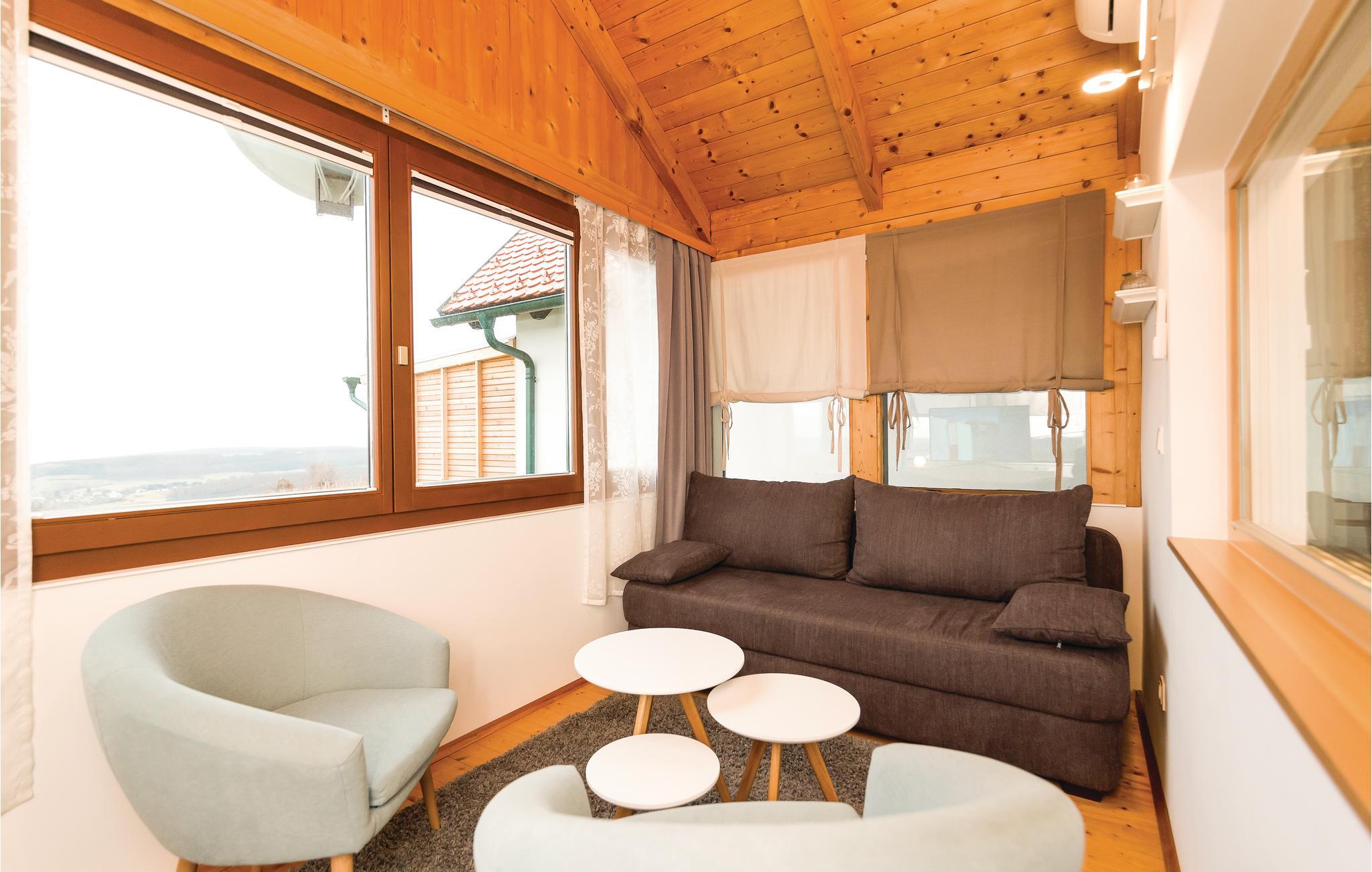 Bo nær grænsen til Ungarn, i dette luksuøst udstyrede feriehus (nabo til ABU114). Skønne, lyse rum og kvalitetsmøbler samt et fremragende udstyret køkken, giver de bedste betingelser til en komfortabel ferie. Da huset ligger på en bjergside, er der en fantastisk panoramaudsigt gennem de store vinduer, ud over Sydburgenlands smukke vinbjerge. Uanset om I vælger at holde en afslappet og rolig ferie, eller vil slappe af med at være aktive og dyrke sport: Det hele er muligt når I holder ferie her. De mange omgivende kurbade indbyder til dage fulde af velvære for krop og sjæl. Men I Burgenland kan I også vandre, ride, cykle, svømme eller besøge en af de mange legepladser hvis ikke I vælger at tage en bane minigolf ved badesøen Burg – for blot at nævne få af de mange muligheder.
