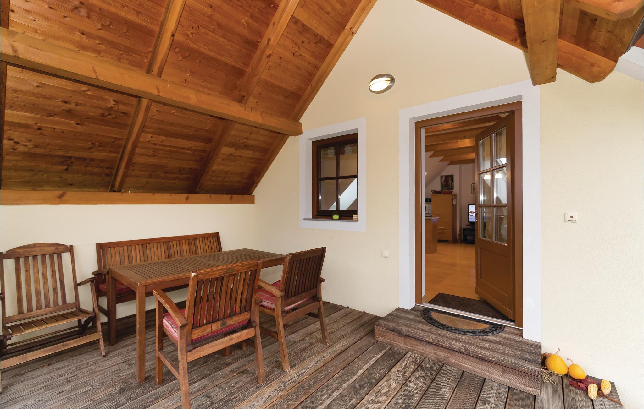 Bo i Burgenland, regionen der er rig på af gastronomiske specialiteter, i denne taglejlighed der er luksuøst og moderne indrettet. Fra jeres private indgang, kommer I ind til de højloftede rum, som danner skønne rammer om jeres behagelige ferie. Badeværelset er ren luksus, soveværelserne dejligt lyse og med bekvemme senge. Huset ligger i skønne omgivelser langs Hummergraben ikke langt fra "Grenzlandkeller", en restaurant nær den østrigske grænse hvor I kan smage lokale retter og glimrende vine fra omgivelserne. I kan leje cykler af husets ejer. I de omliggende kurbade kan I tilbringe timer fulde af wellness for krop og sjæl og bagefter nyde at slappe af hjemme i jeres lejlighed.