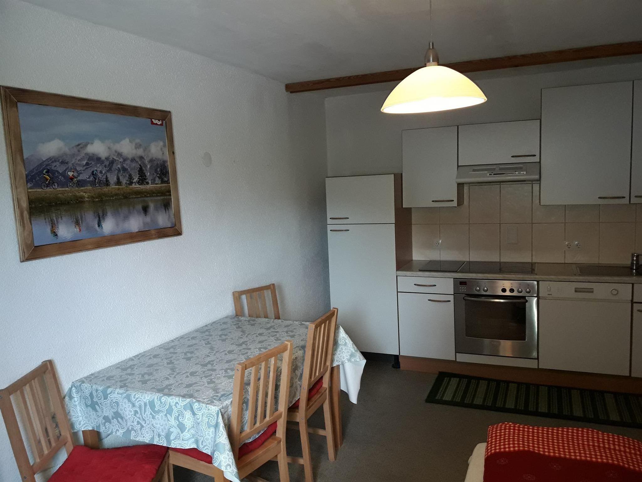 2-Zimmer-Wohnung 38 m2, komfortabel und gemütlich eingerichtet: 1 Doppelzimmer, Wohn-/Esszimmer mit einer Doppelcouch, Esstisch und Sat-TV sowie offener Küche (4 Kochplatten, Backofen, Geschirrspüler, Tiefkühler) und Dusche/WC.