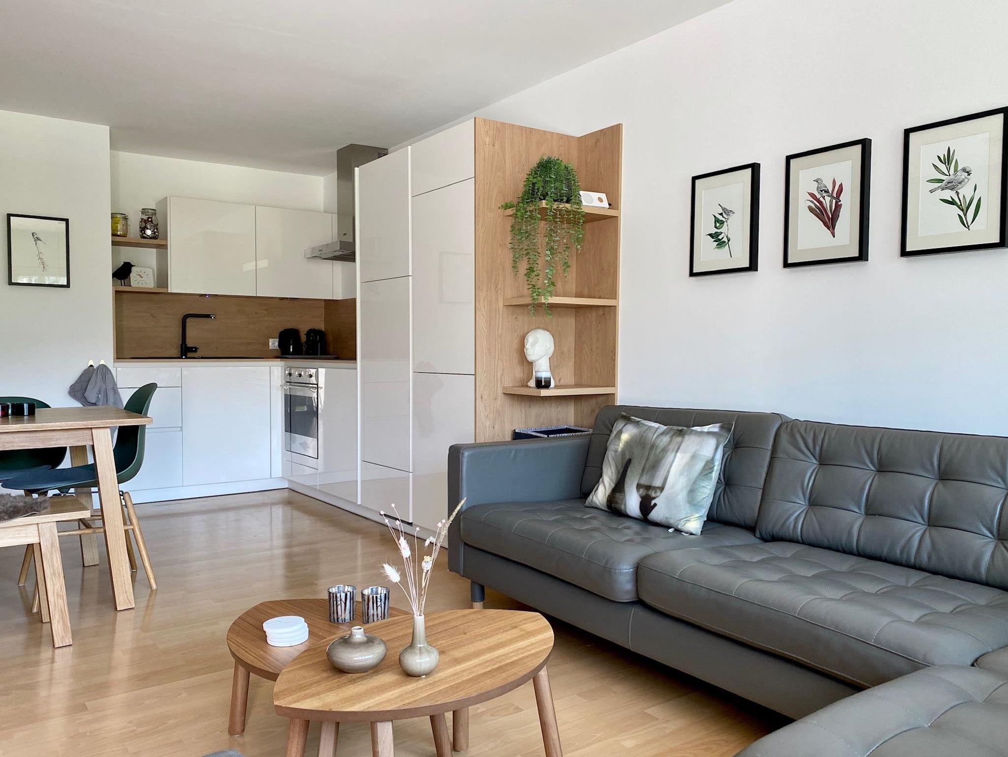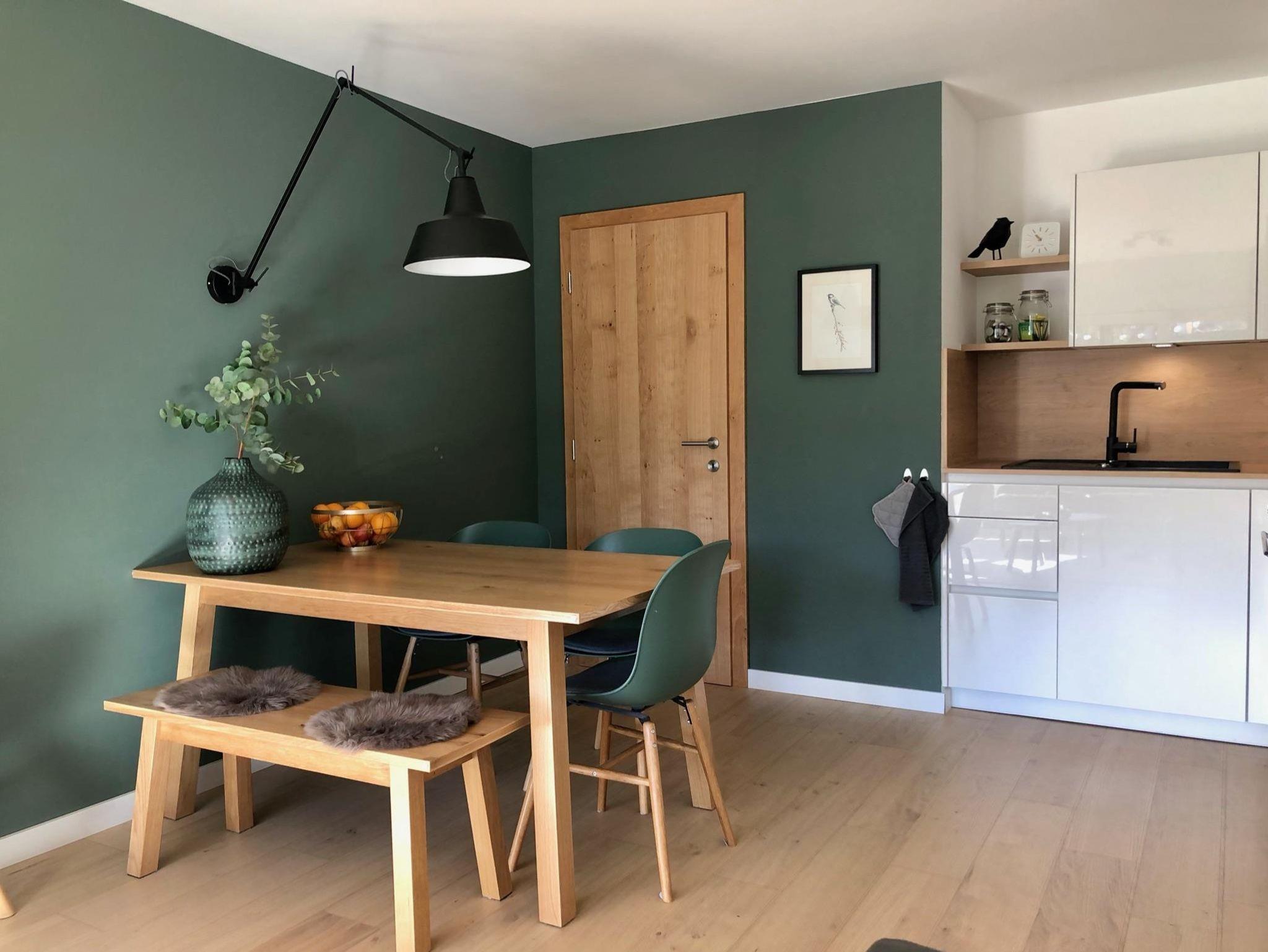 Im ersten Stock befindet sich das Talseite Apartment, ein komplett renoviertes Studio für bis zu 4 Personen. Die Wohnung befindet sich an der Nordseite des Gebäudes mit herrlichem Blick auf den Wilder Kaiser.