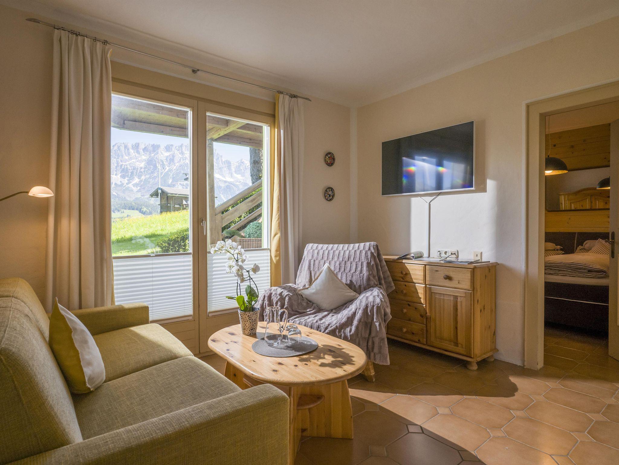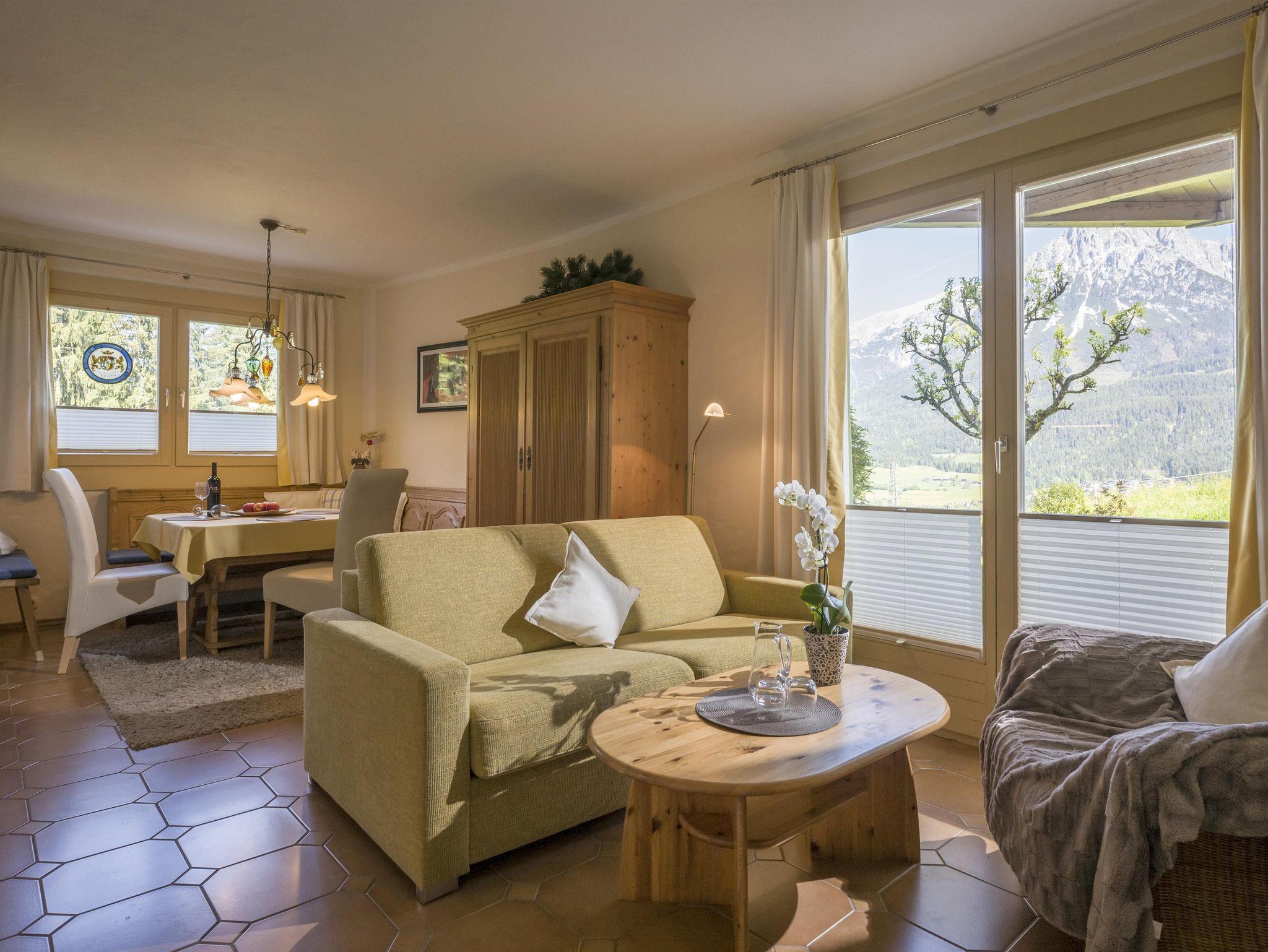 Der Empfang war sehr nett und total freundlich. Die Wohnung ist etwas renovierungsbedüftig. Die Möbel alt aber sauber . Eine tolle Aussicht auf den Wilden Kaiser.