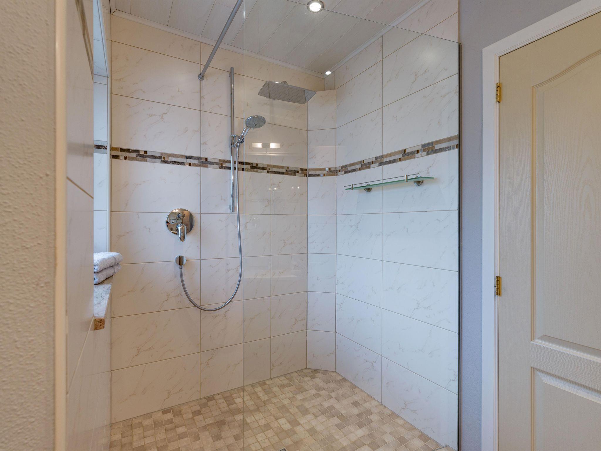 Die Ferienwohnung hat 2 Bäder wovon ein Badezimmer in einem Schalfzimmer ist. Zusätzlich gibt es noch 2 separate WC's. Der große Wohnraum mit abgetrennter Küche lädt zum verweilen ein.