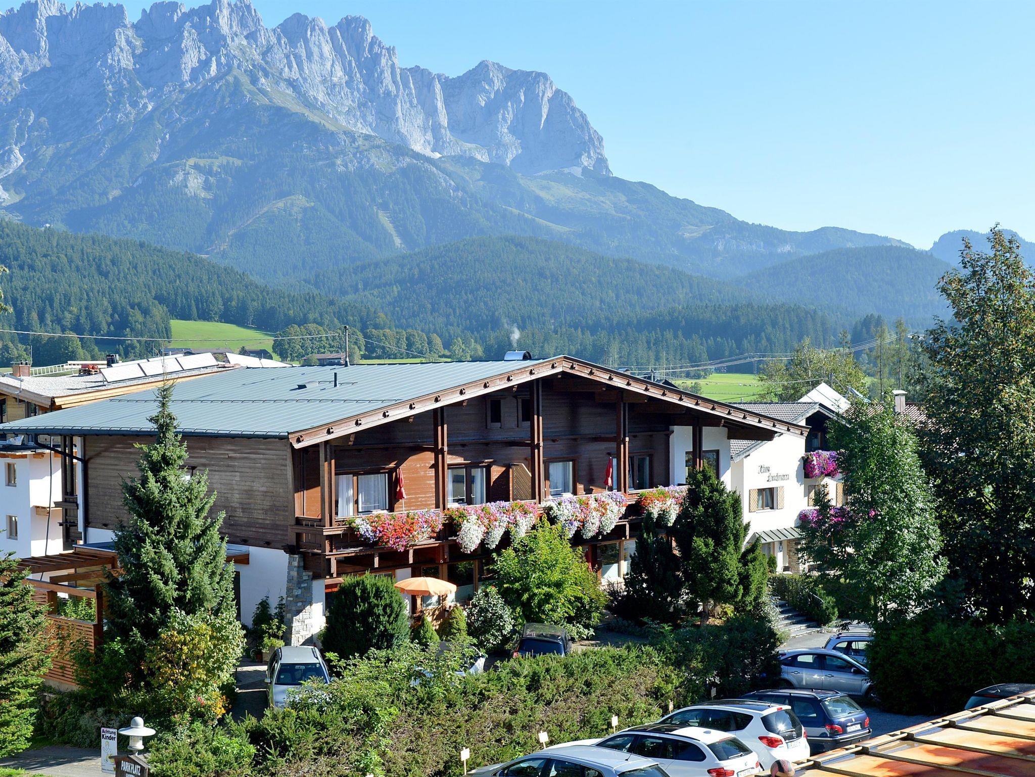 In absoluter Toplage und doch ruhig, mit Blick auf den Wilden Kaiser, befindet sich unsere gepflegte Appartementpension.