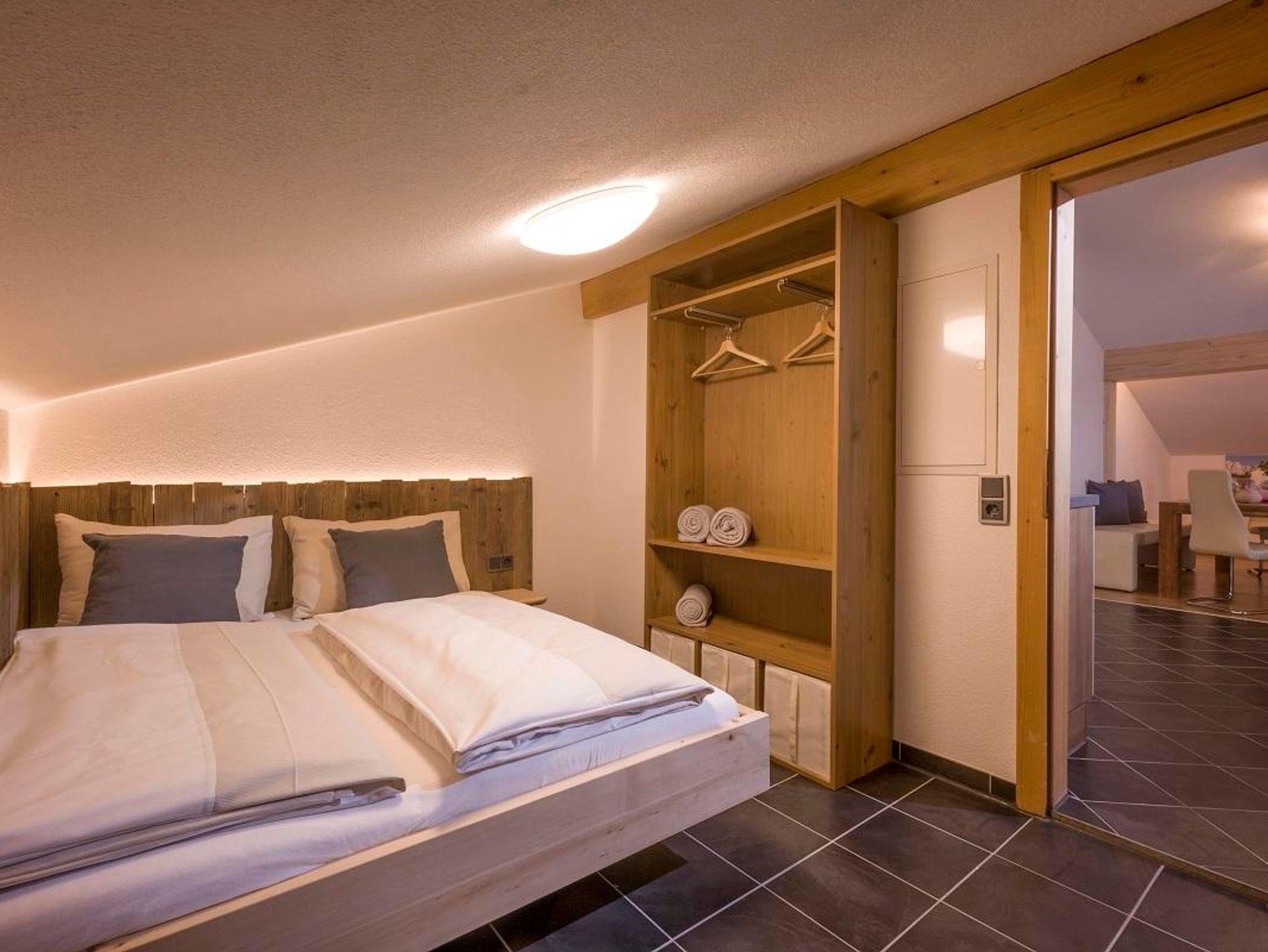 1 Schlafzimmer in der Dachschräge mit Doppelbett,