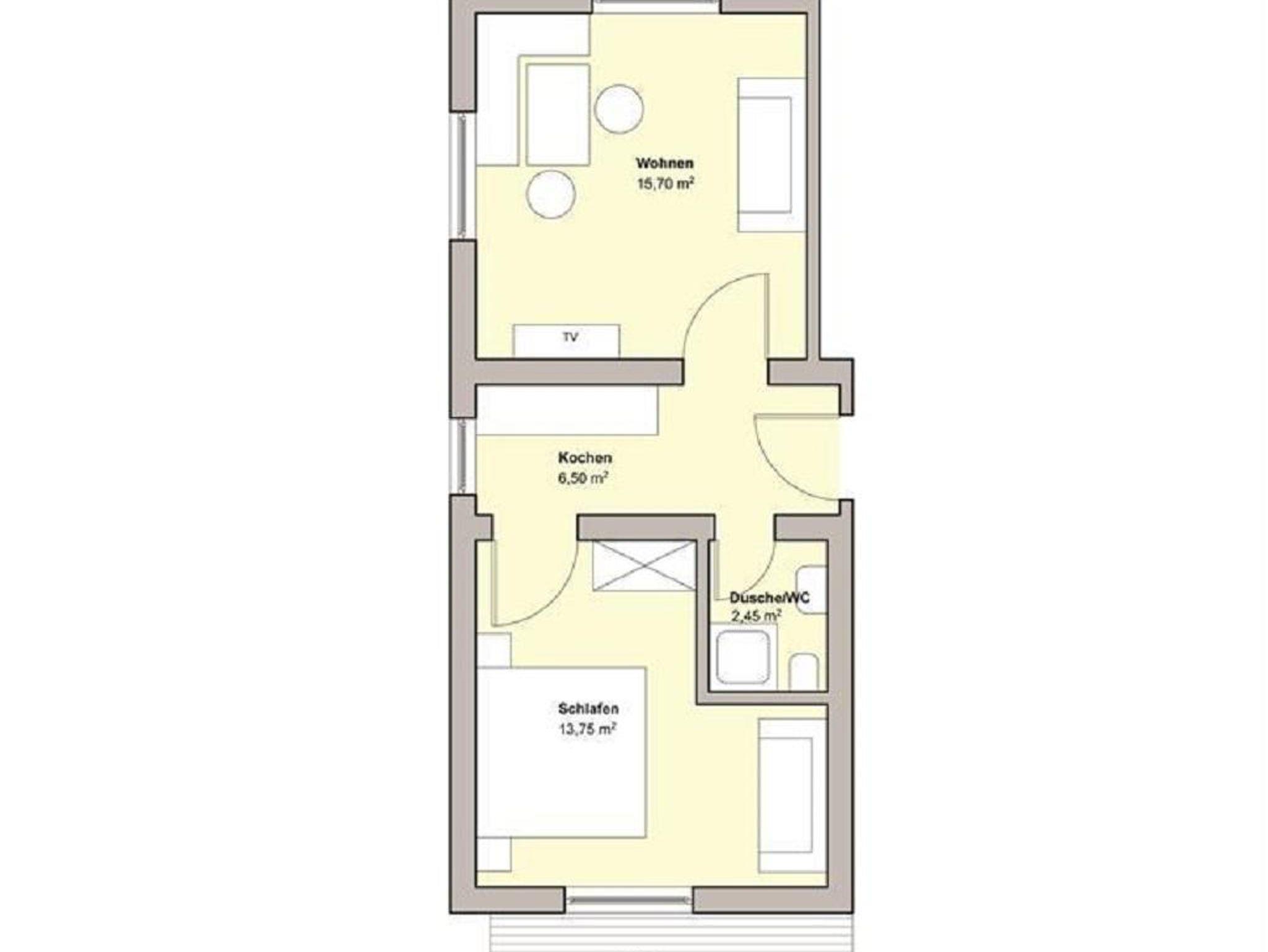 Gemütliche Ferienwohnung für 2-4 Personen, bestehend aus einem geräumigen Wohn-/Schlafraum mit Doppelcouch zum Ausziehen, einem separaten Schlafzimmer, Küchenecke, Badezimmer (Dusche/WC) und zwei Balkonen (nord- und südseitig).