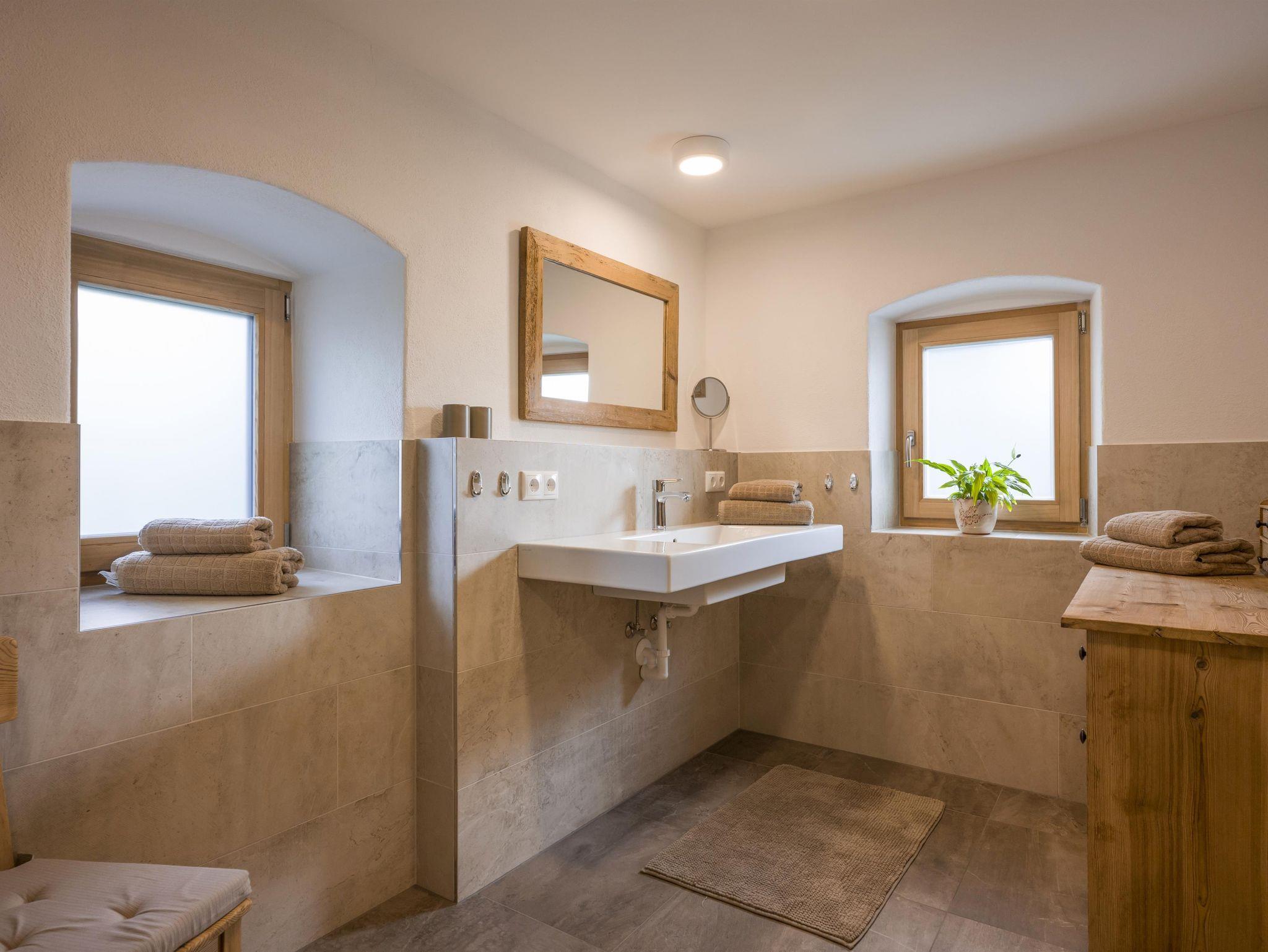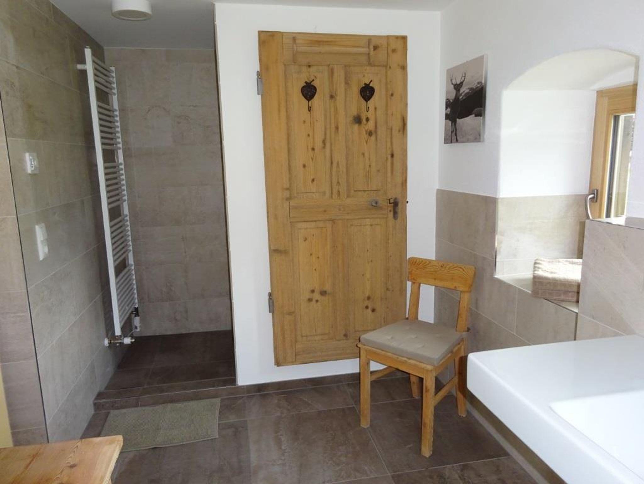 Im Erdgeschoss befinden sich ein neu eingerichtetes Bad, ein gemütliches Wohnzimmer mit Kachelofen und Fernseher sowie eine Küche mit Holzofen, Geschirrspüler und allen dazugehörigen Geräten.