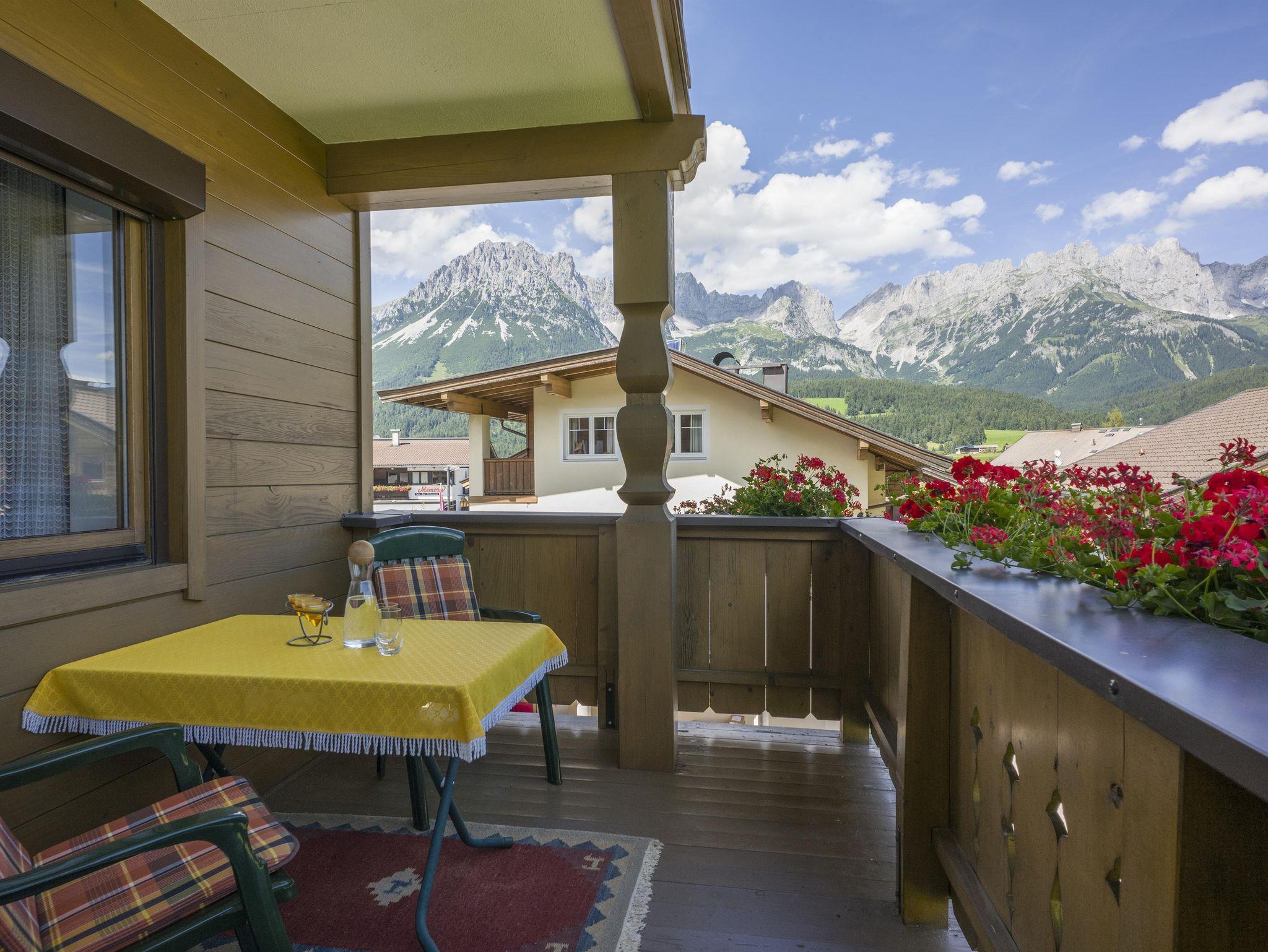 Unsere drei im 1.Stock und im Souterrain gelegenen Nichtraucher-Ferienwohnungen, sind gemütlich im Tiroler Stil komplett und komfortabel eingerichtet. Genießen Sie bei den oberen Appartements die sonnigen Balkone mit Panoramablick zur Kapelle, zum Hartkaiser und zum imposanten Wilden Kaiser; im Winter können Sie die tollen Veranstaltungen auf der Stangl-Leit direkt von Ihrem Balkon aus miterleben.