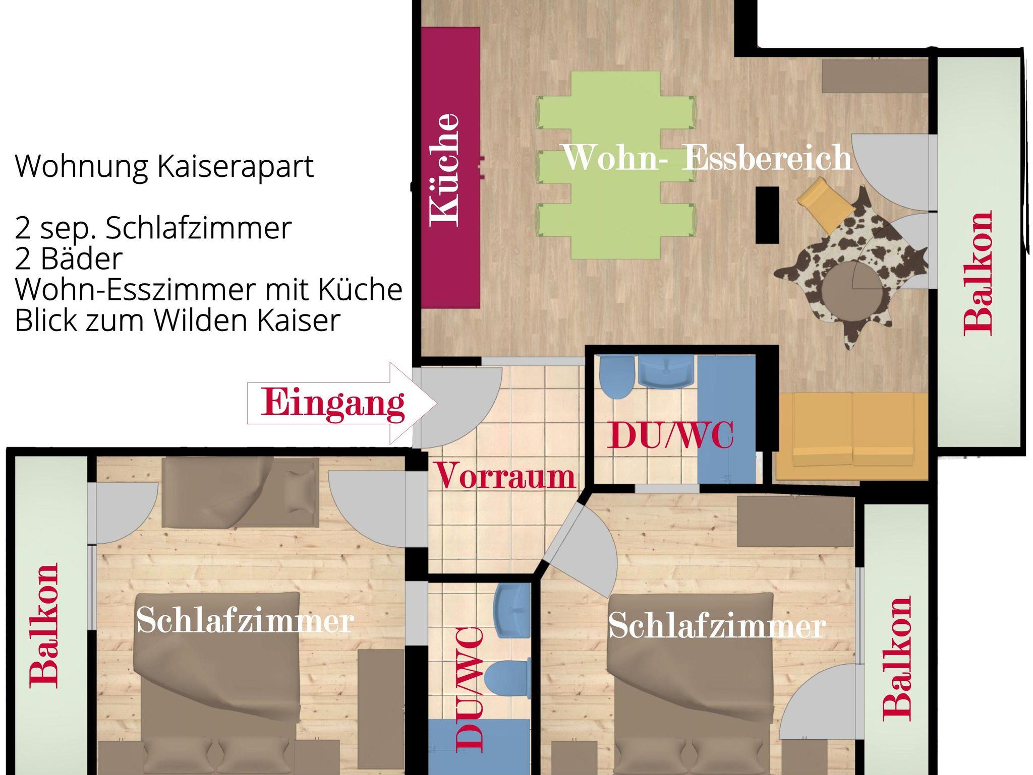 KAISERapart ELLMAU, Wohnung Kaiserapart 70m²/2 Schlafz./2 Bäder/Balkon