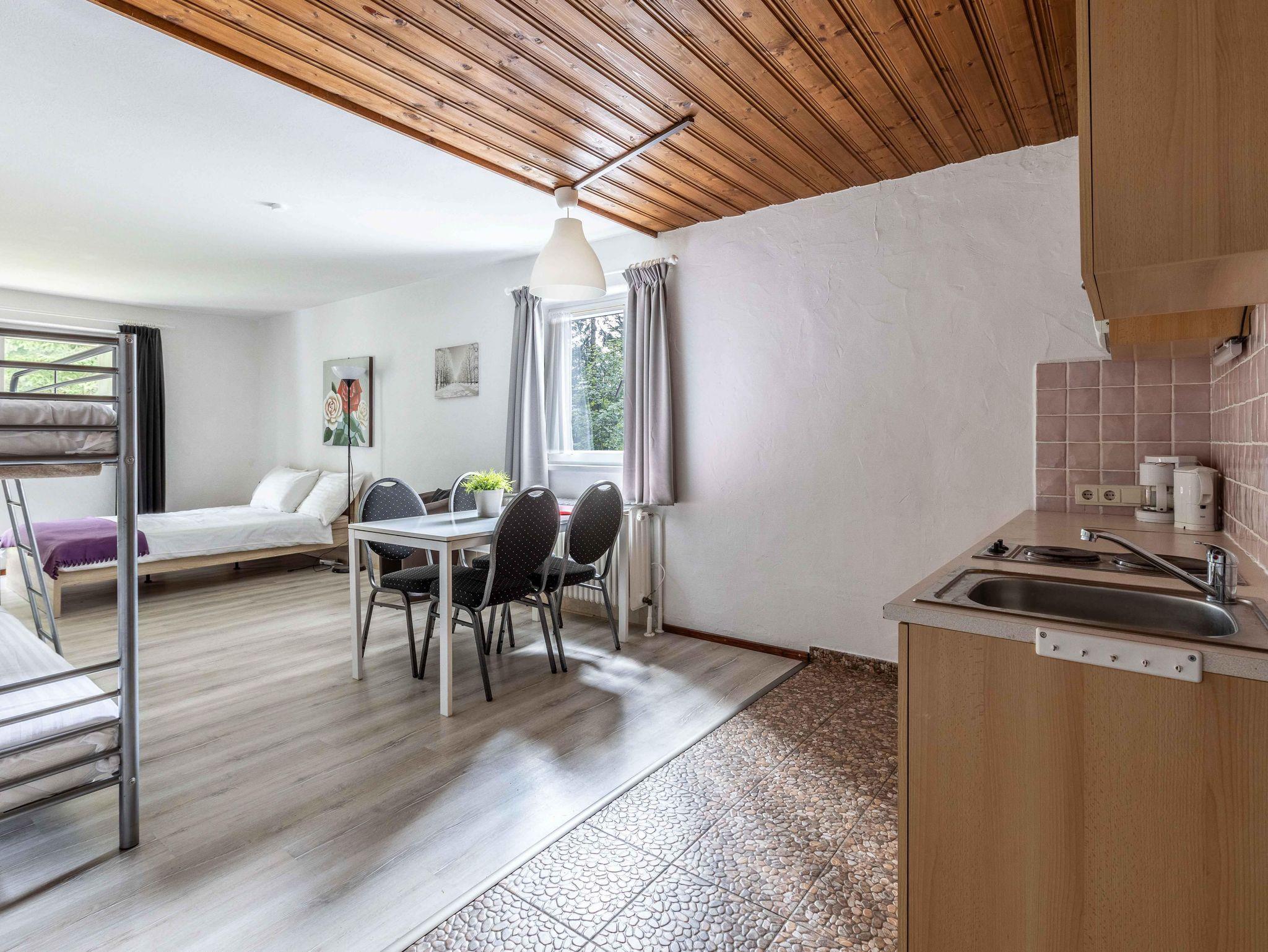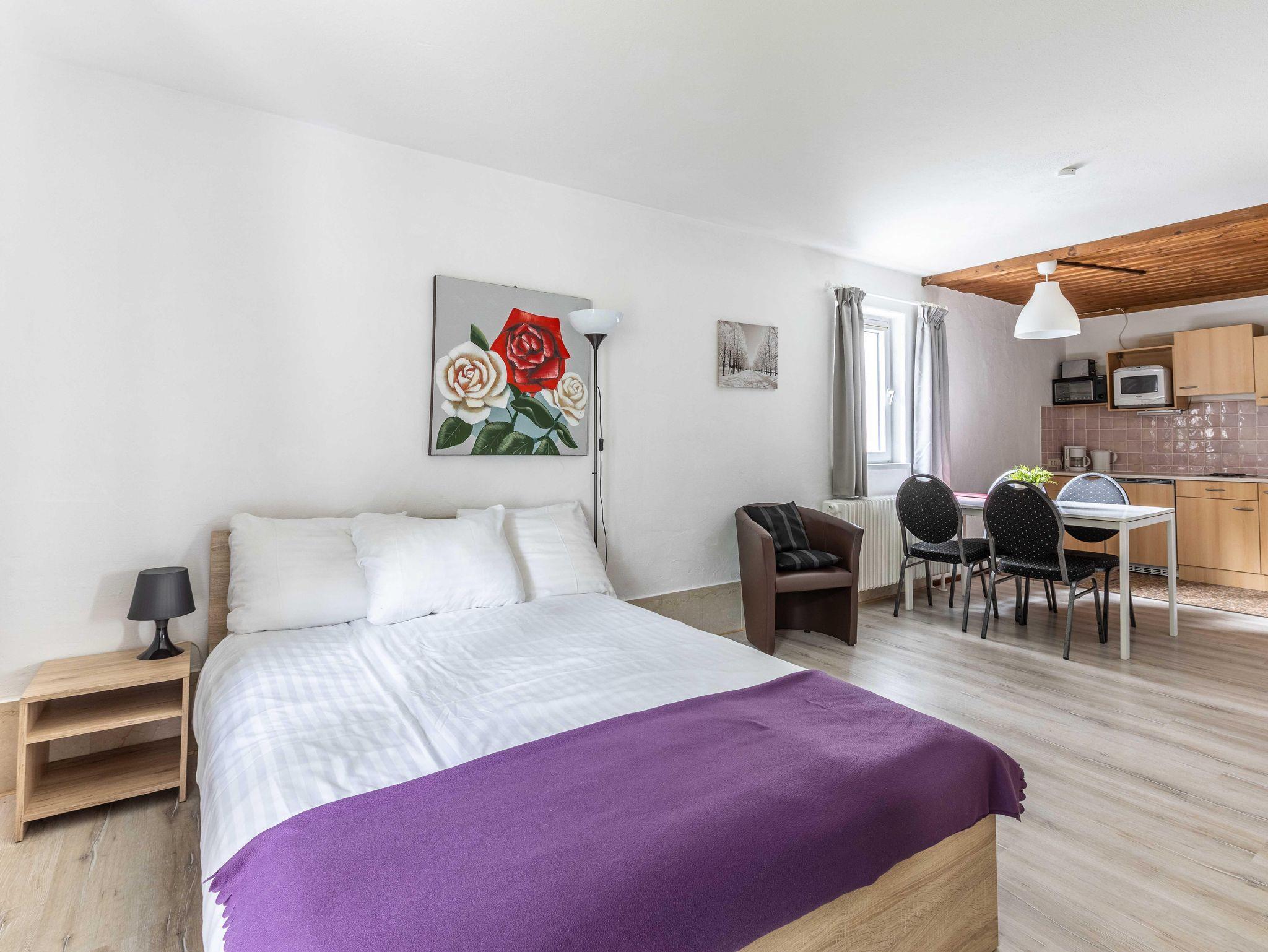 Willkommen im Apartment 11, Deinem perfekten Rückzugsort für einen erholsamen Aufenthalt. Das 36 m² Apartment befindet sich im 1.Stock und bietet ein gemütliches Wohn-/ Schlafzimmer mit Flat-TV sowie einer voll ausgestatteten Küchenzeile. Das Badezimmer verfügt über Dusche und WC. Genieße den Komfort einer eigenen Unterkunft und entspanne in ruhiger Umgebung. Vom Wohnzimmer gelangst Du auf die Terrasse mit Waldblick.