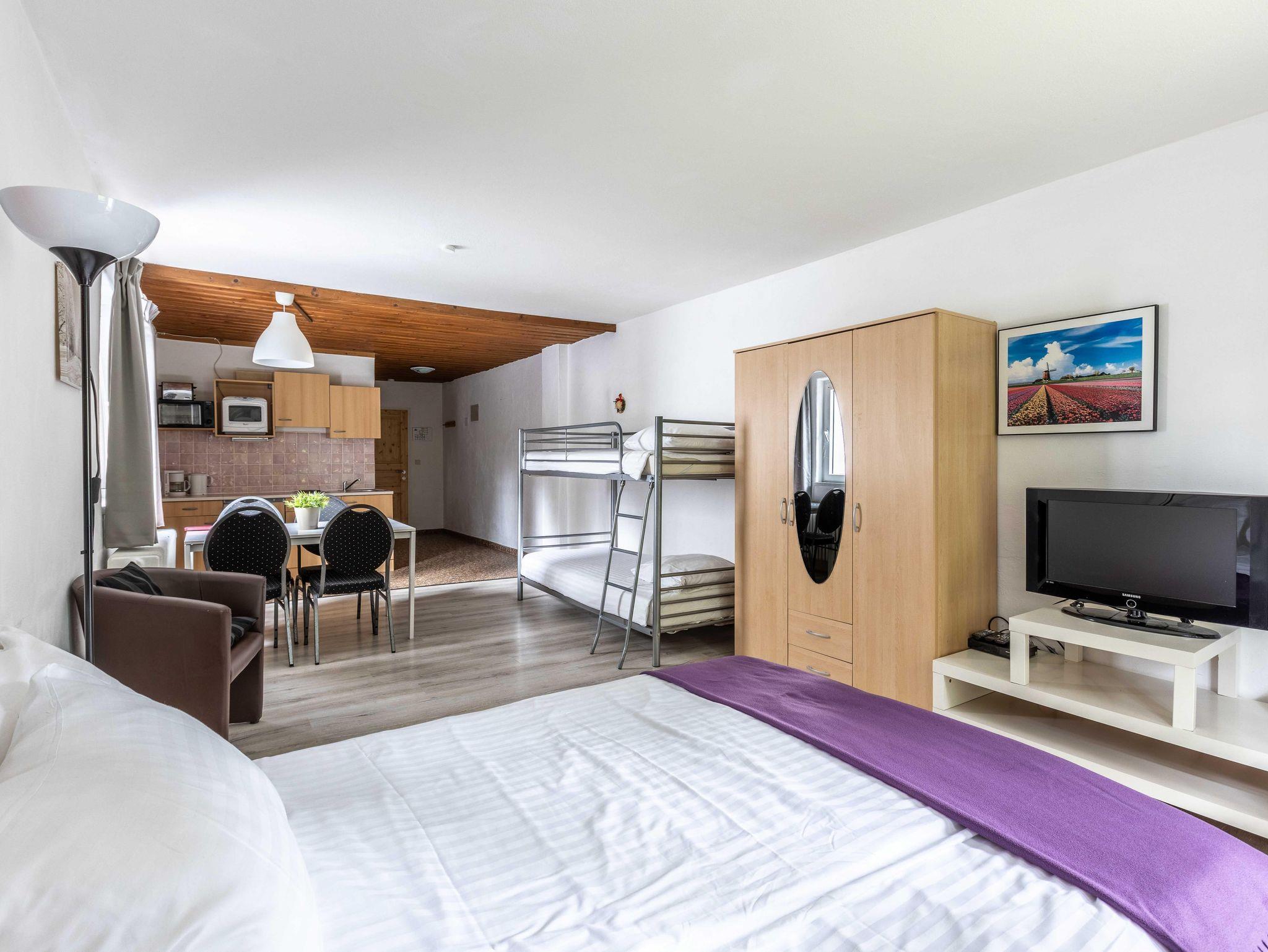 Die Zimmer bieten Flat-TV, bequemes Doppelbett (teils plus Stockbett), Dusche, Sitzgruppe sowie teilweise Balkon.