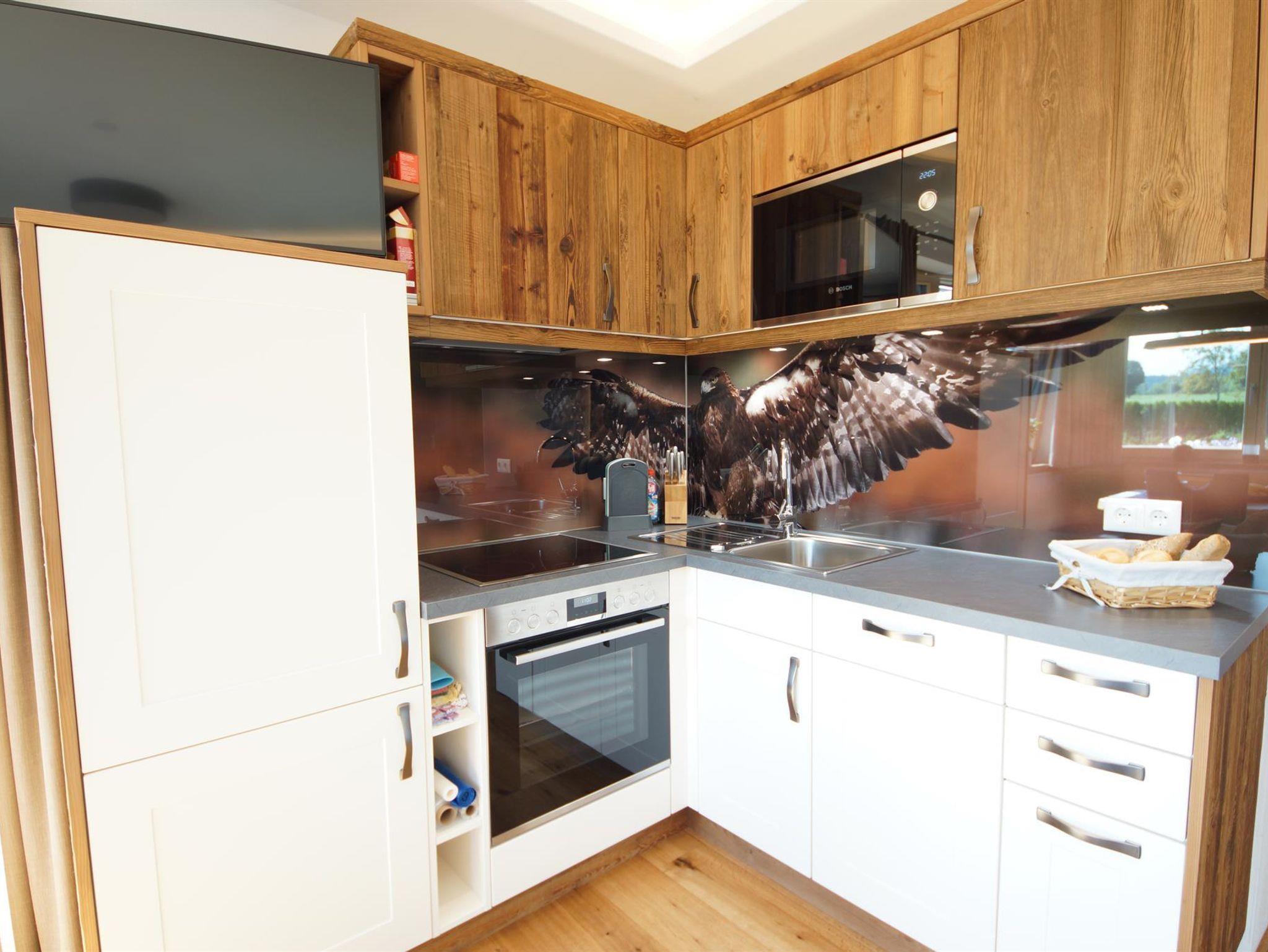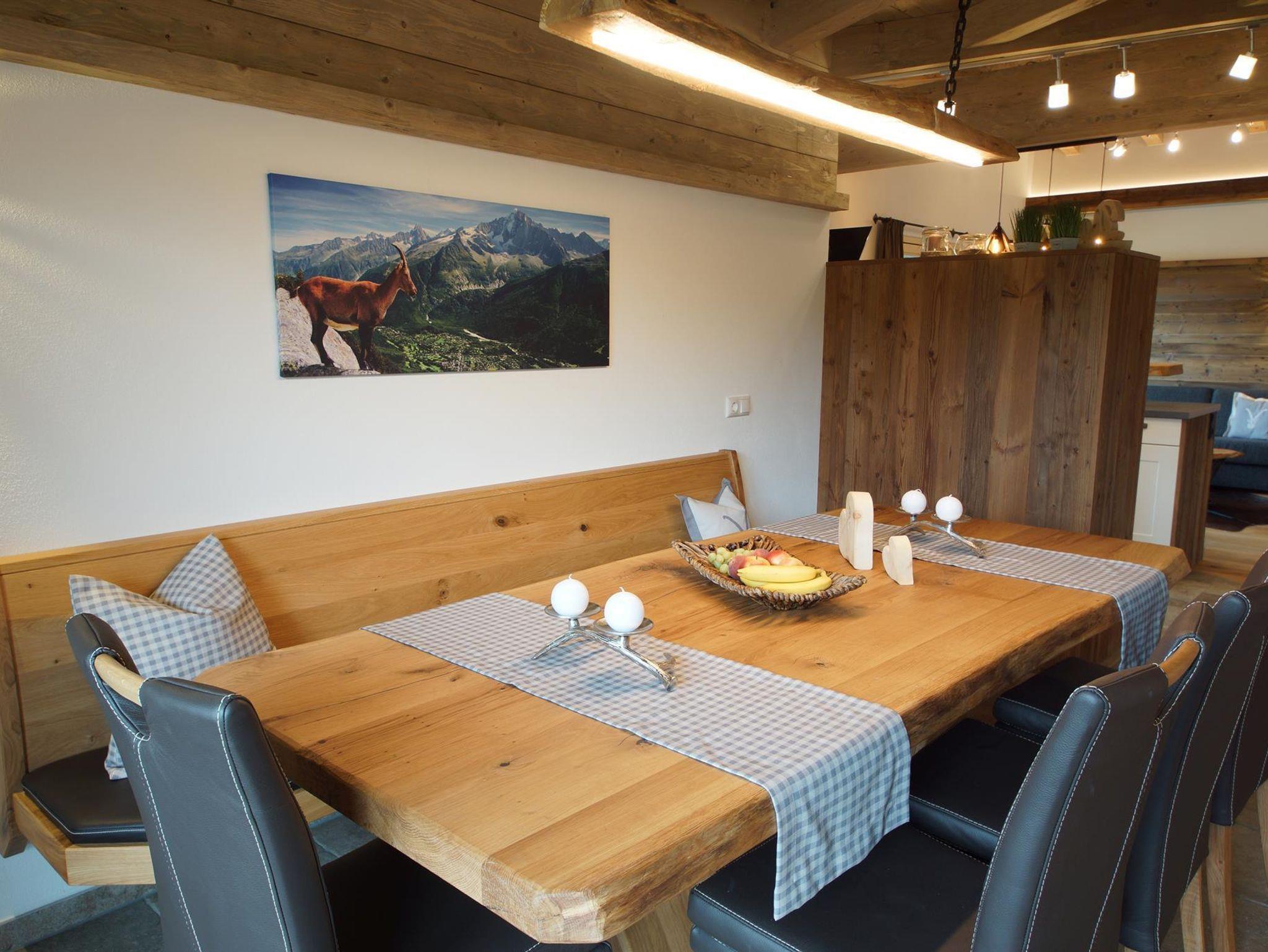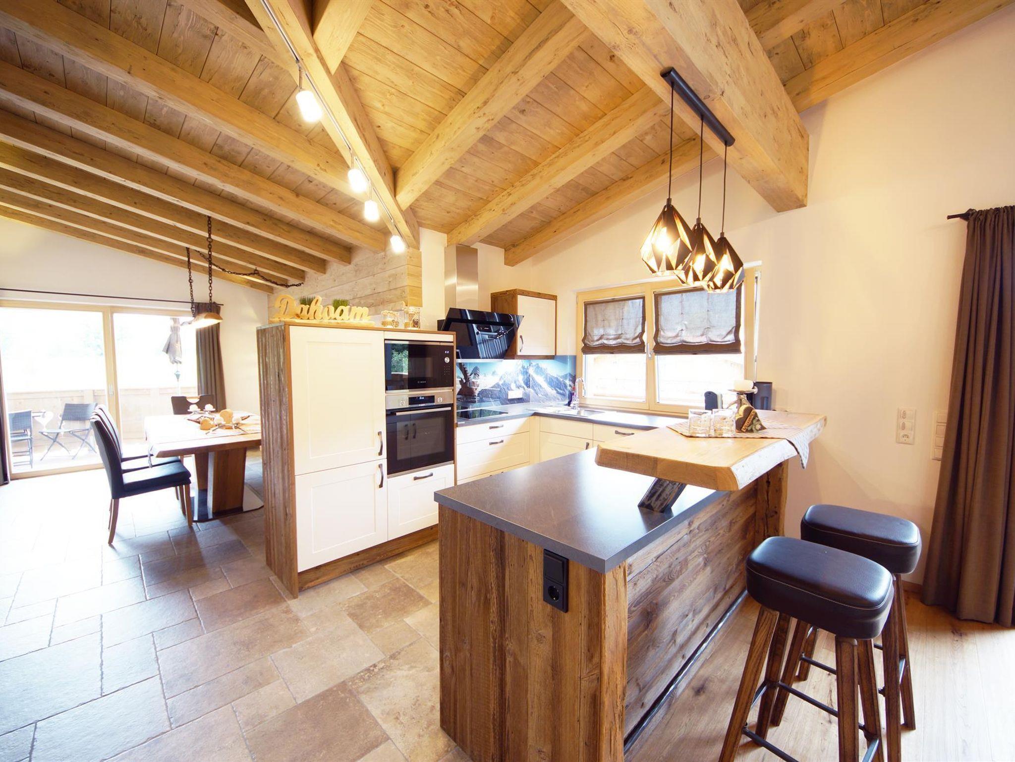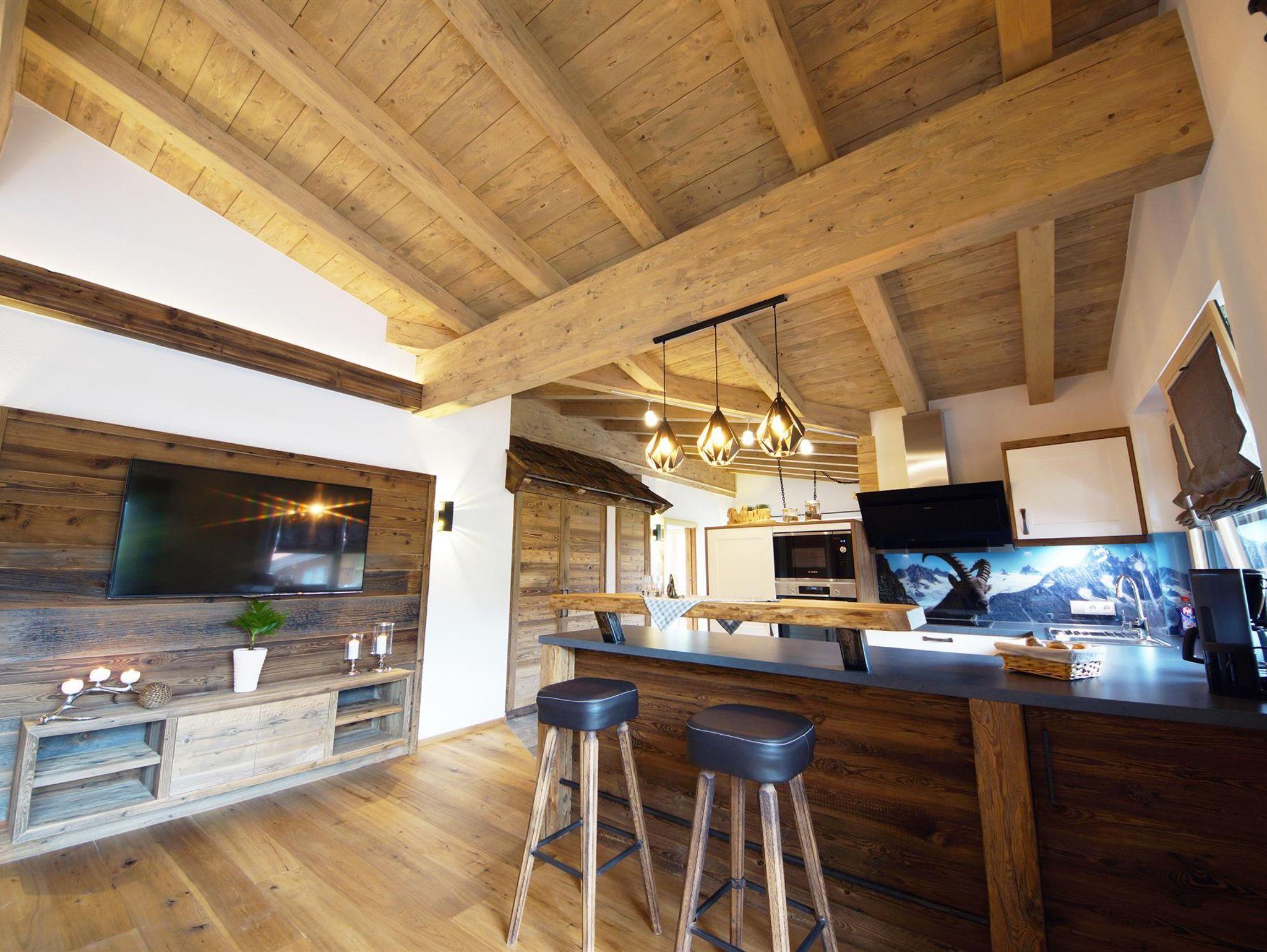 Die Ferienwohnung ist unser ganzer Stolz und lässt keine Wünsche offen. Die Dachgeschosswohnung für 6-8 Personen mit unglaublichen Blick zum Wilden Kaiser, Kitzbüheler Horn und den Hartkaiser, “ begeistert mit einer großzügigen Raumaufteilung.
