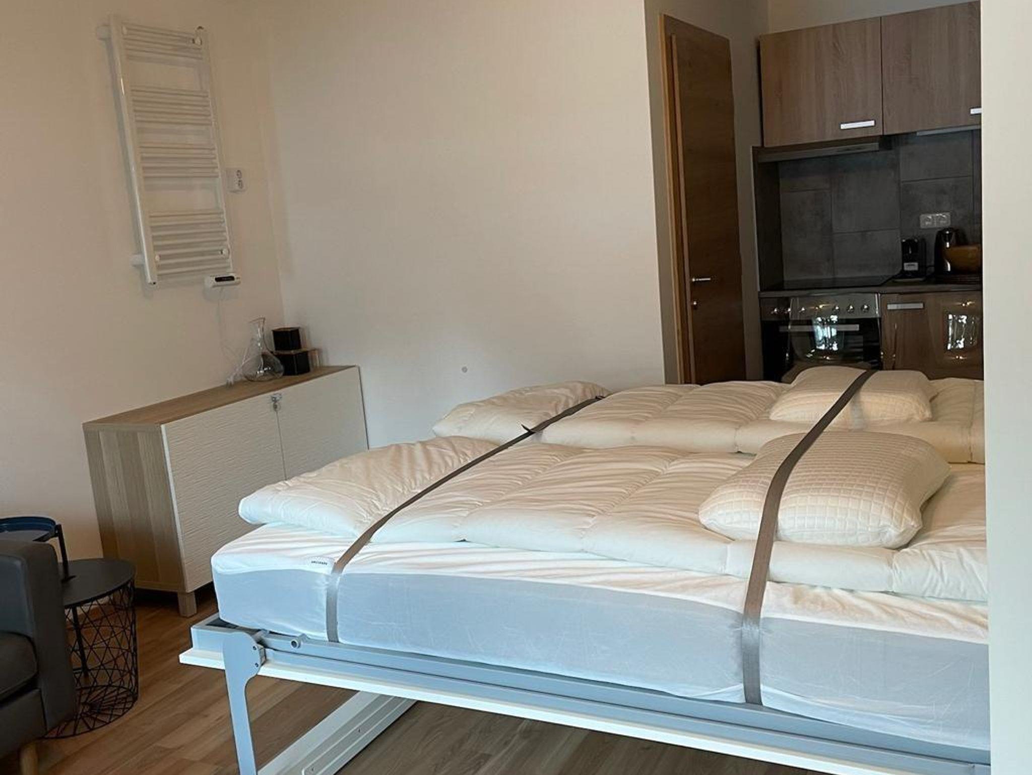 Diese Wohnung zeichnet sich durch die perfekte Aufteilung des Studios aus. Außerdem eine schöne Aussicht auf die Skipiste neben dem Komplex und den angrenzenden Wald. Die Wohnung (inkl. Balkon) hat ein Wohnzimmer mit Sofa, (Klappbett) 2 Personen (200x180), TV, Essecke und natürlich eine Küche mit allen Annehmlichkeiten. Im geschlossenen Flur befindet sich ein (NICHT klappbares) 2-Personen Etagenbett (200x180). Das Badezimmer hat eine Dusche, ein Waschbecken und eine Toilette.