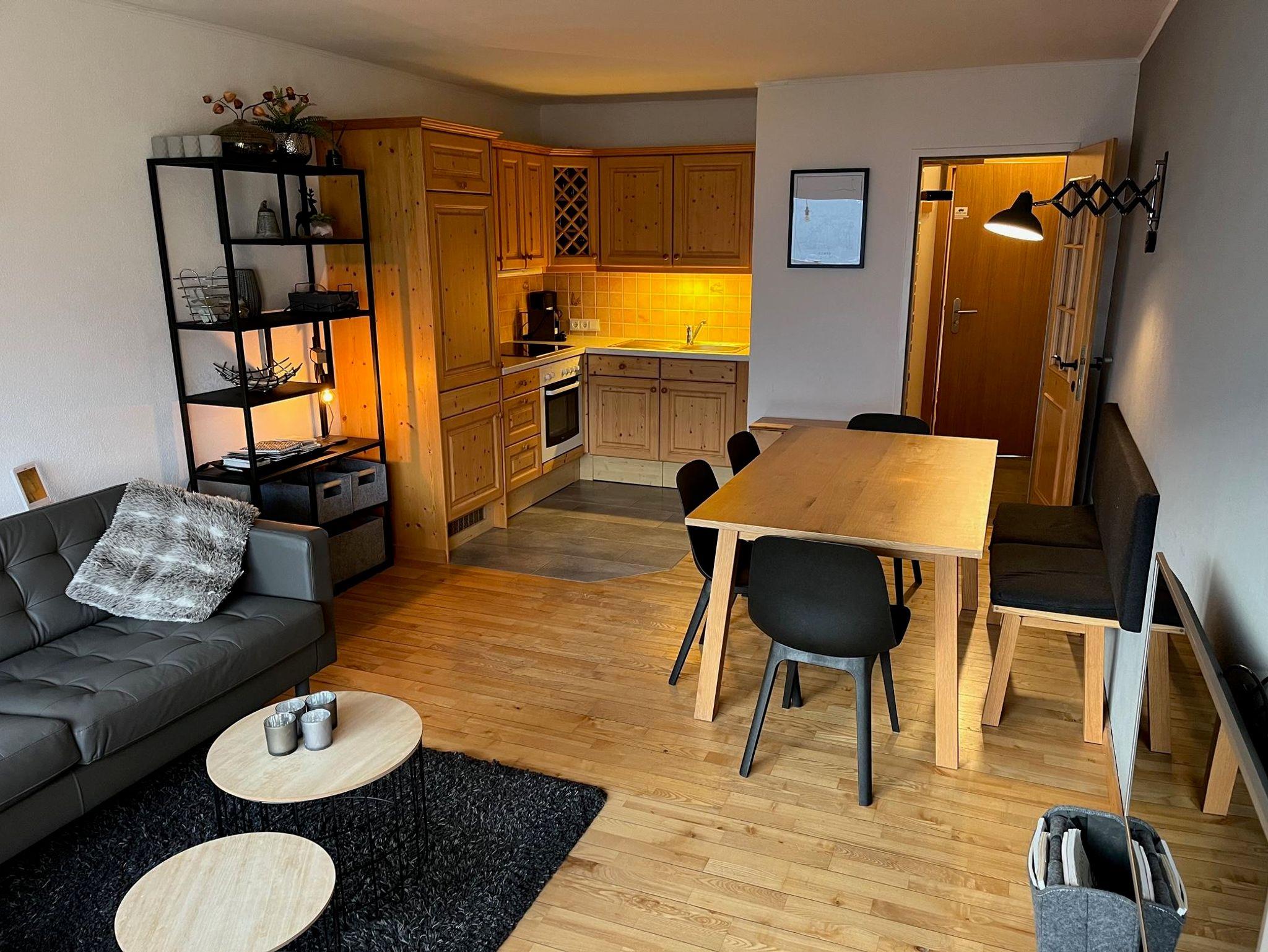 Im ersten Stock befindet sich das Talseite Apartment, ein komplett renoviertes Studio für bis zu 4 Personen. Die Wohnung befindet sich an der Nordseite des Gebäudes mit herrlichem Blick auf den Wilder Kaiser.