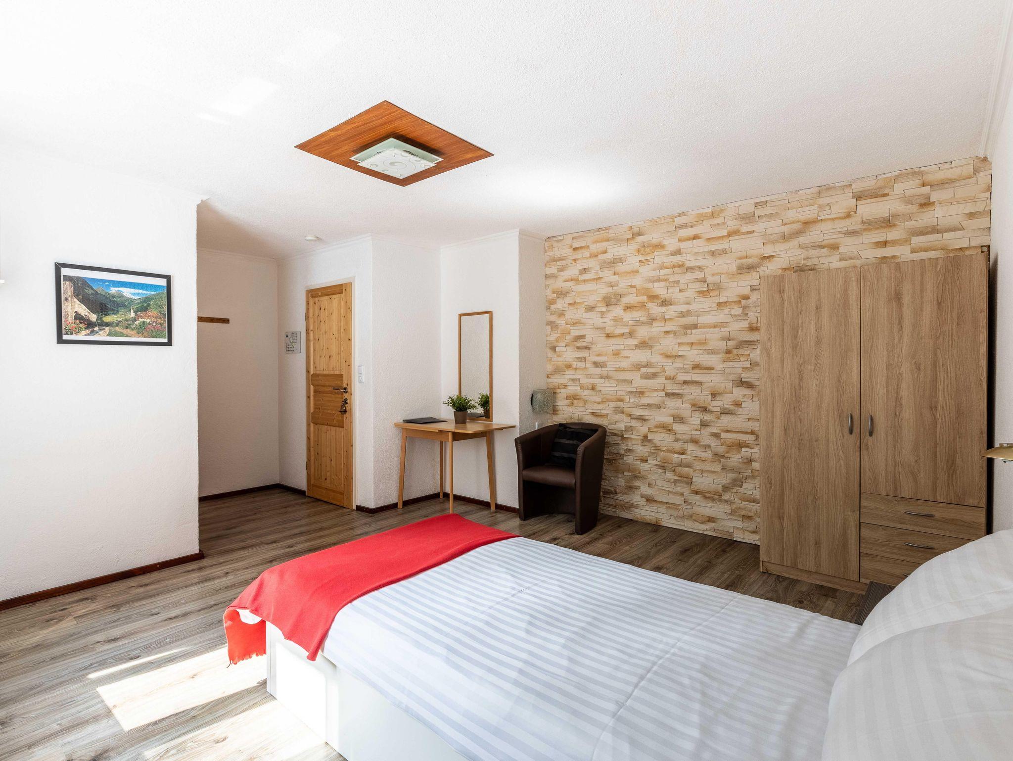 Die Zimmer bieten Flat-TV, bequemes Doppelbett (teils plus Stockbett), Dusche, Sitzgruppe sowie teilweise Balkon.