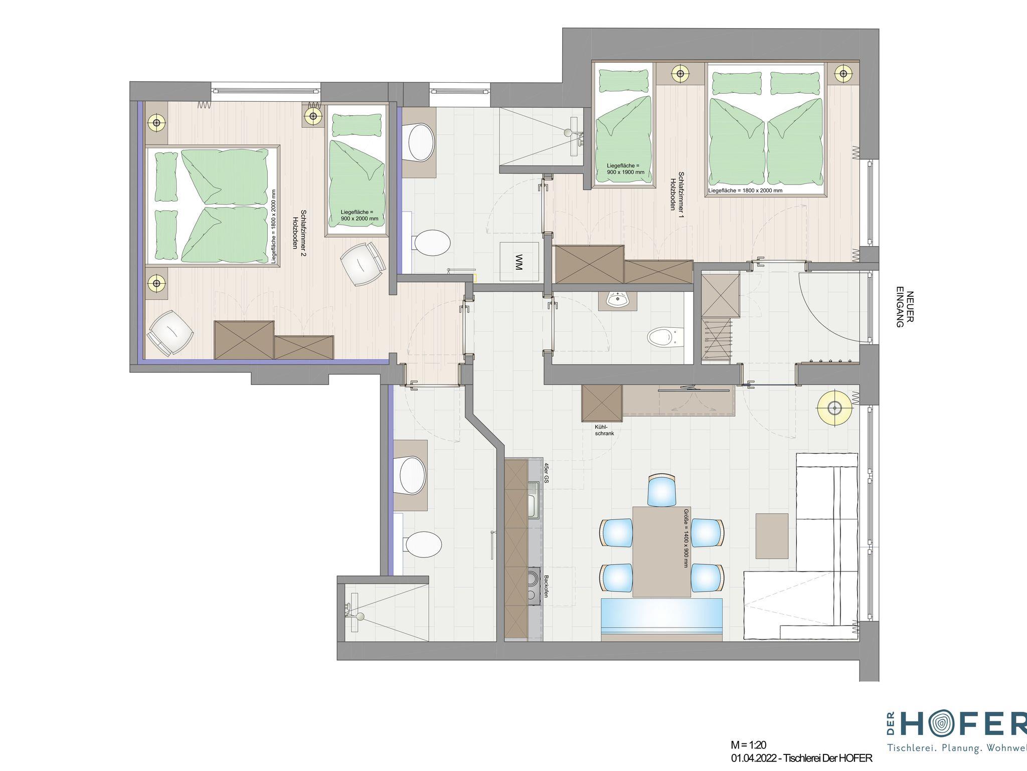Ein gemütliches, ruhiges Appartement, 53m2, für 2-5 Personen, 1 Schlafraum mit Zusatzbett, 1 Wohn-Schlafraum mit ausziehbarem Doppelbett, Sat-TV, W-Lan, Telefon, Dusche, WC, Vorraum,