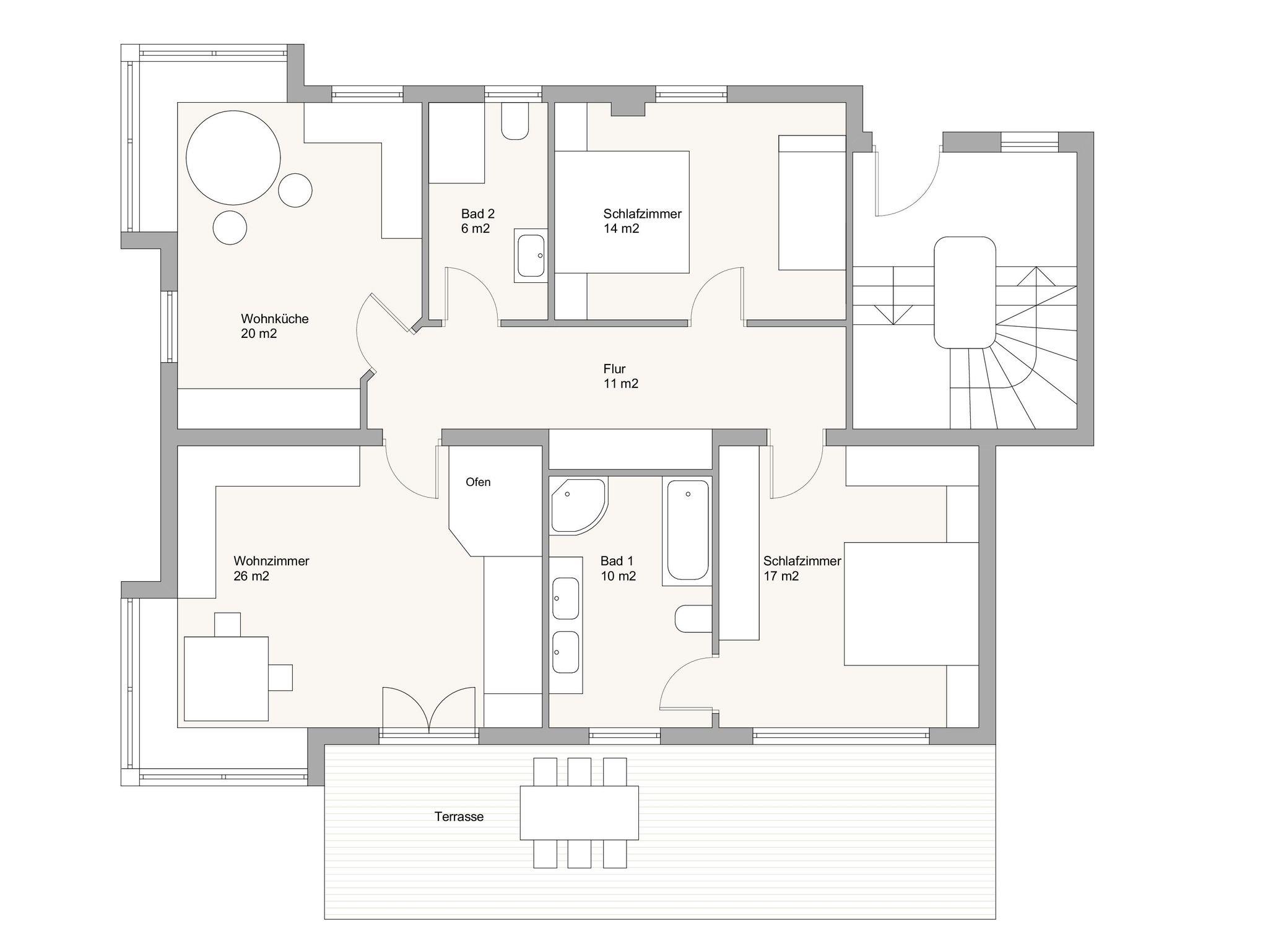 5 vollwertige Betten, 1 Schlafsofa, 2 Bäder