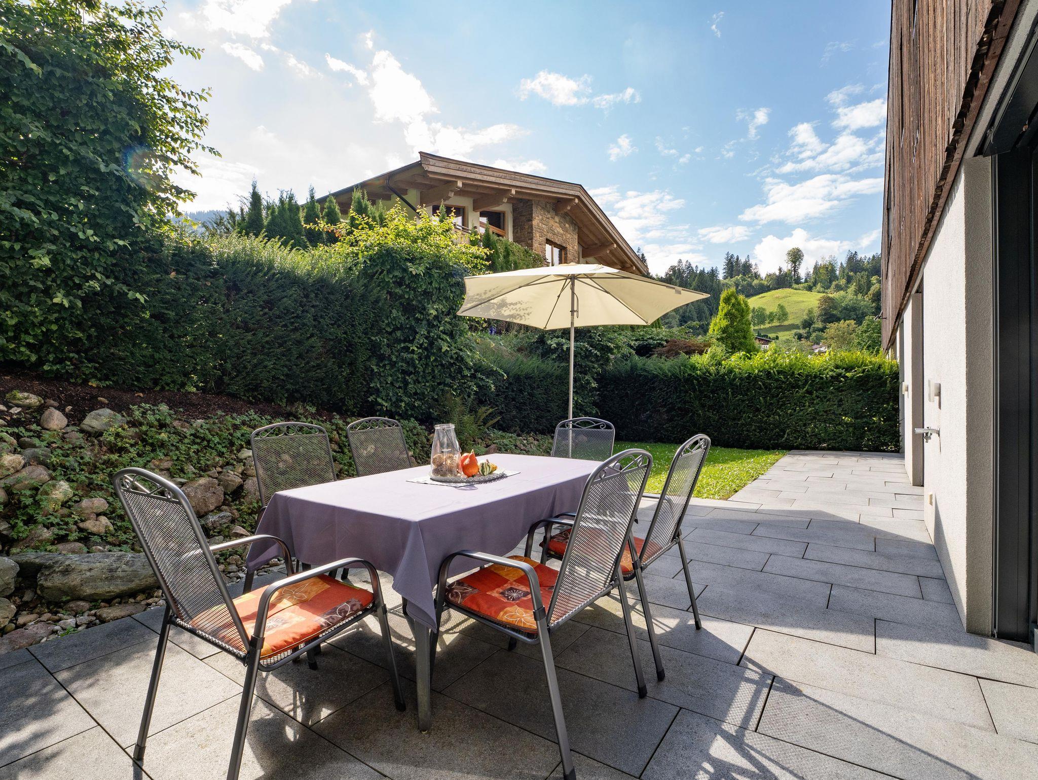 Es liegt in absolut ruhiger Lage zwischen einem Wald und einer großen Wiese in unmittelbarer Nähe der Talstation der Hartkaiserbahn, von hier aus gelangt man in die gesamte Skiwelt Wilder Kaiser.